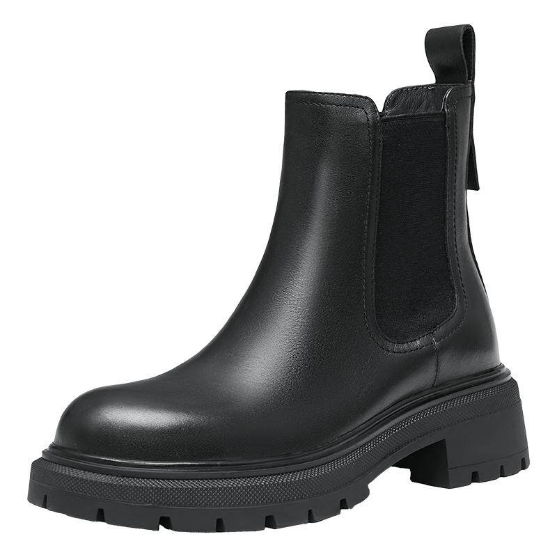 天美意复古英伦切尔西烟筒靴女鞋厚底短靴皮靴冬新款KQX04DD4