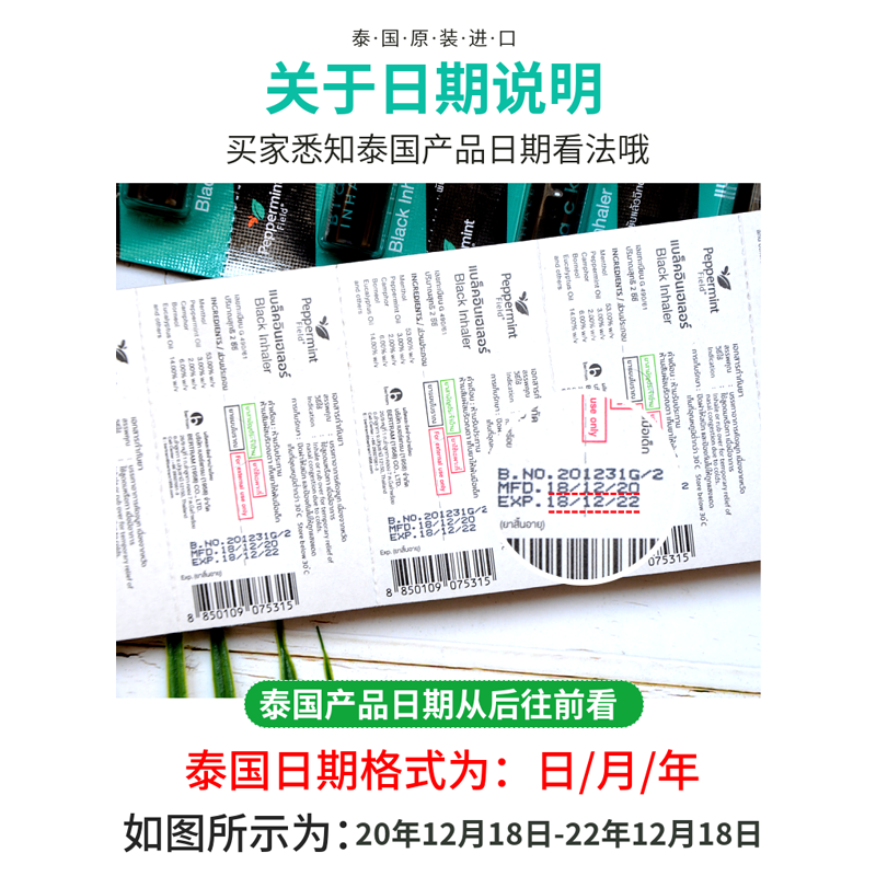 泰国进口peppermint field 黑色鼻通花香超强黑鼻通 酷爽提神醒脑