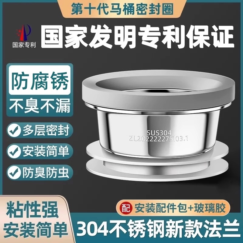 不锈钢马桶法兰密封圈防臭加厚垫圈加长高神器坐便器底部配件大全