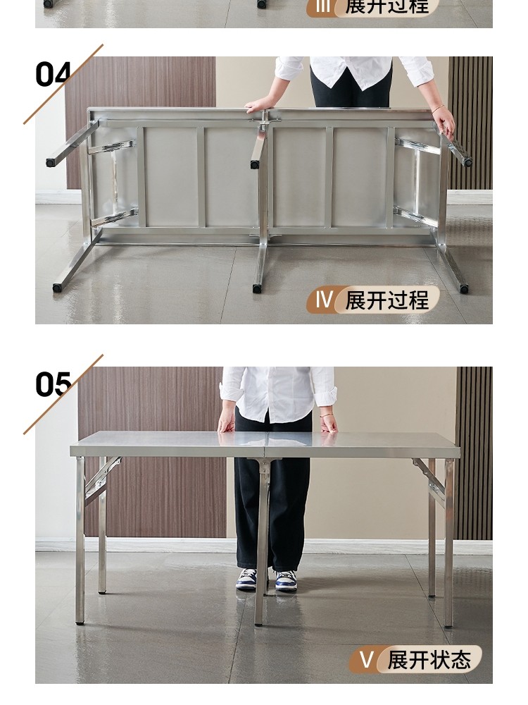 定制加厚不锈钢折叠桌餐桌户外桌子商用会议桌长方形工作台操作台