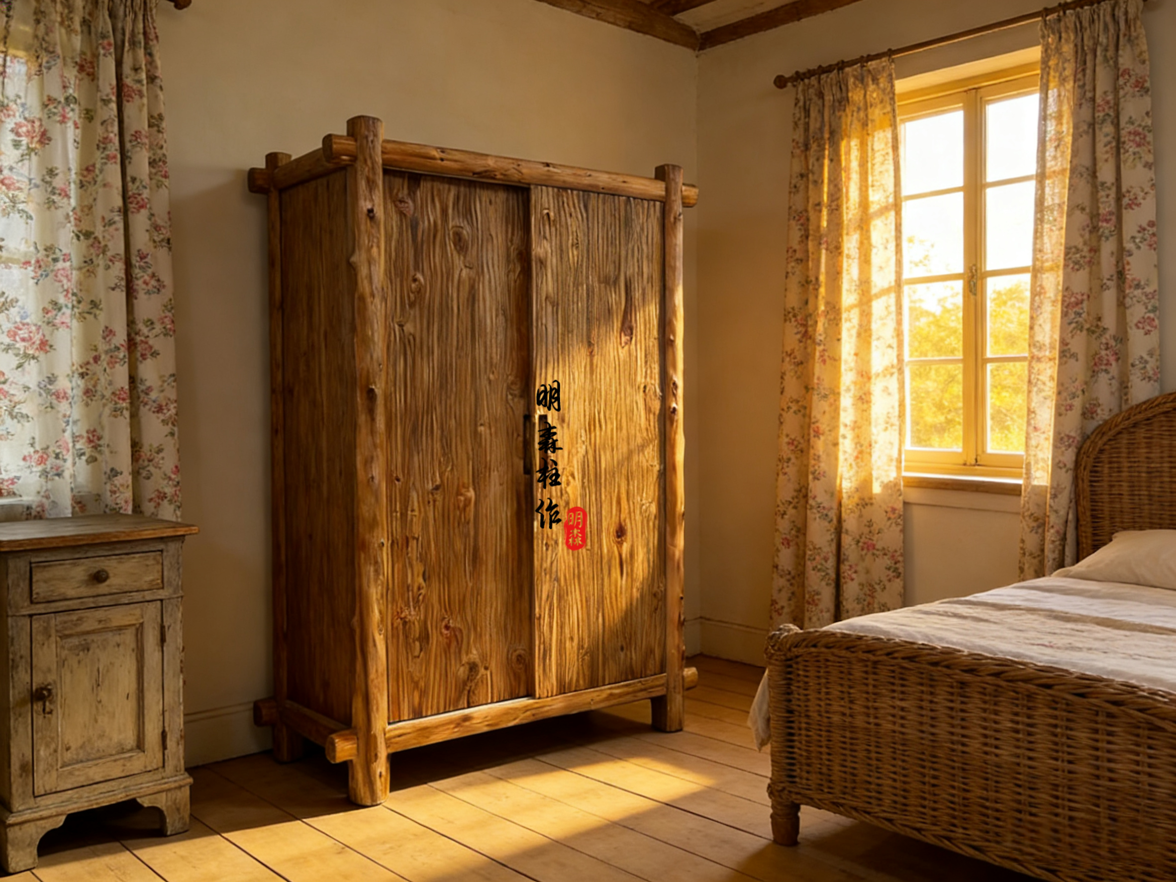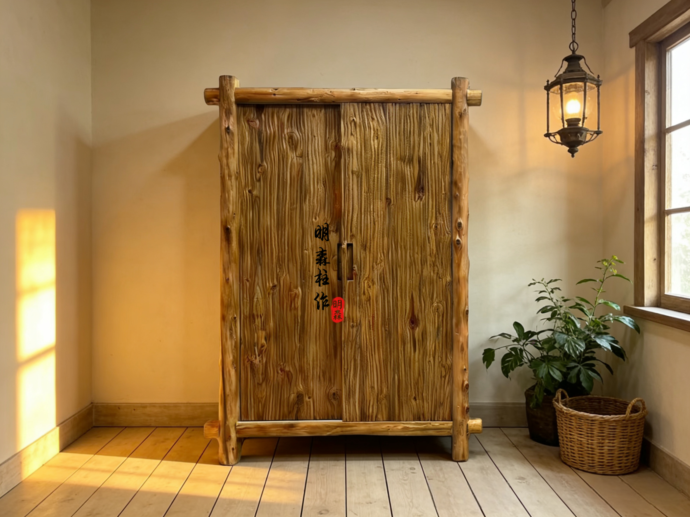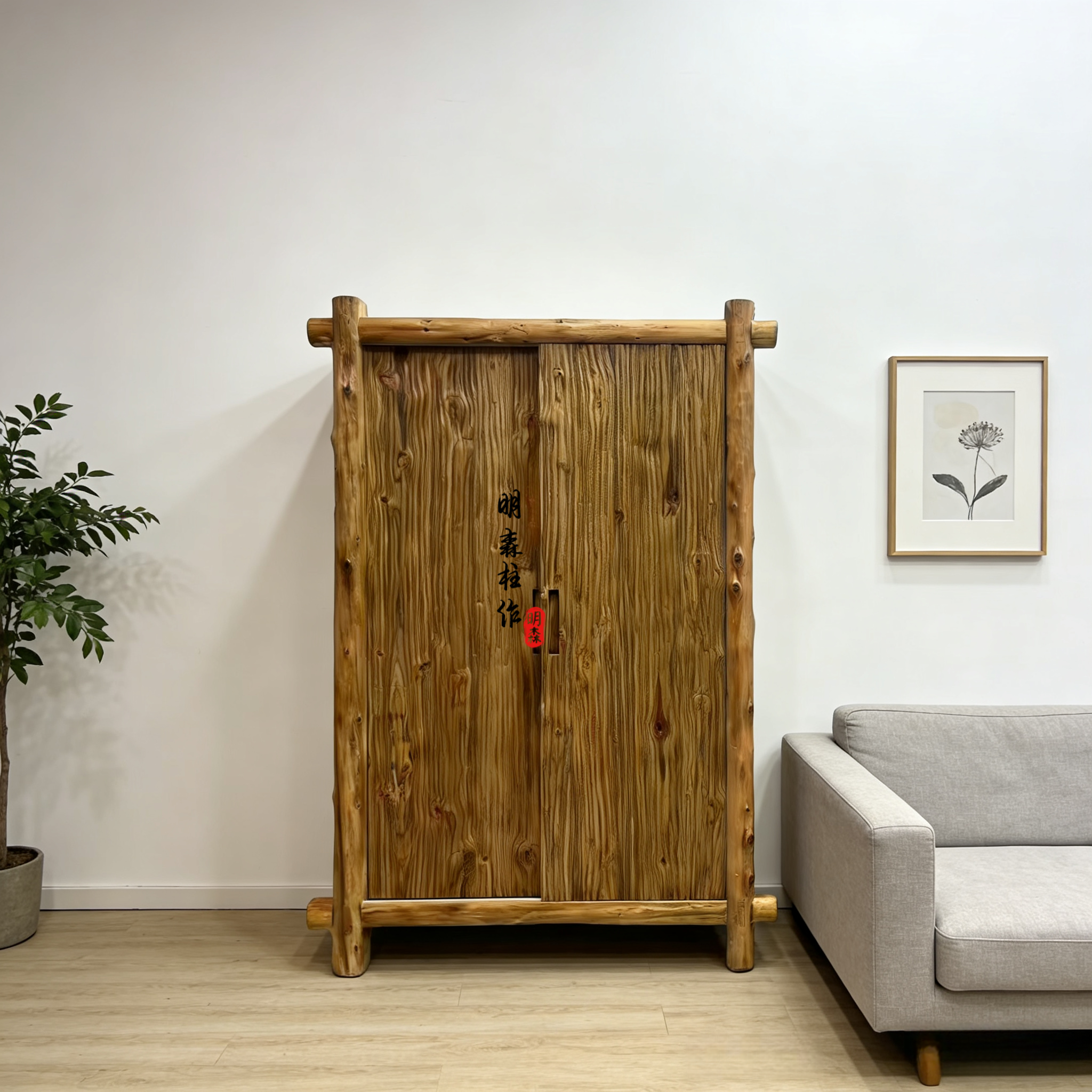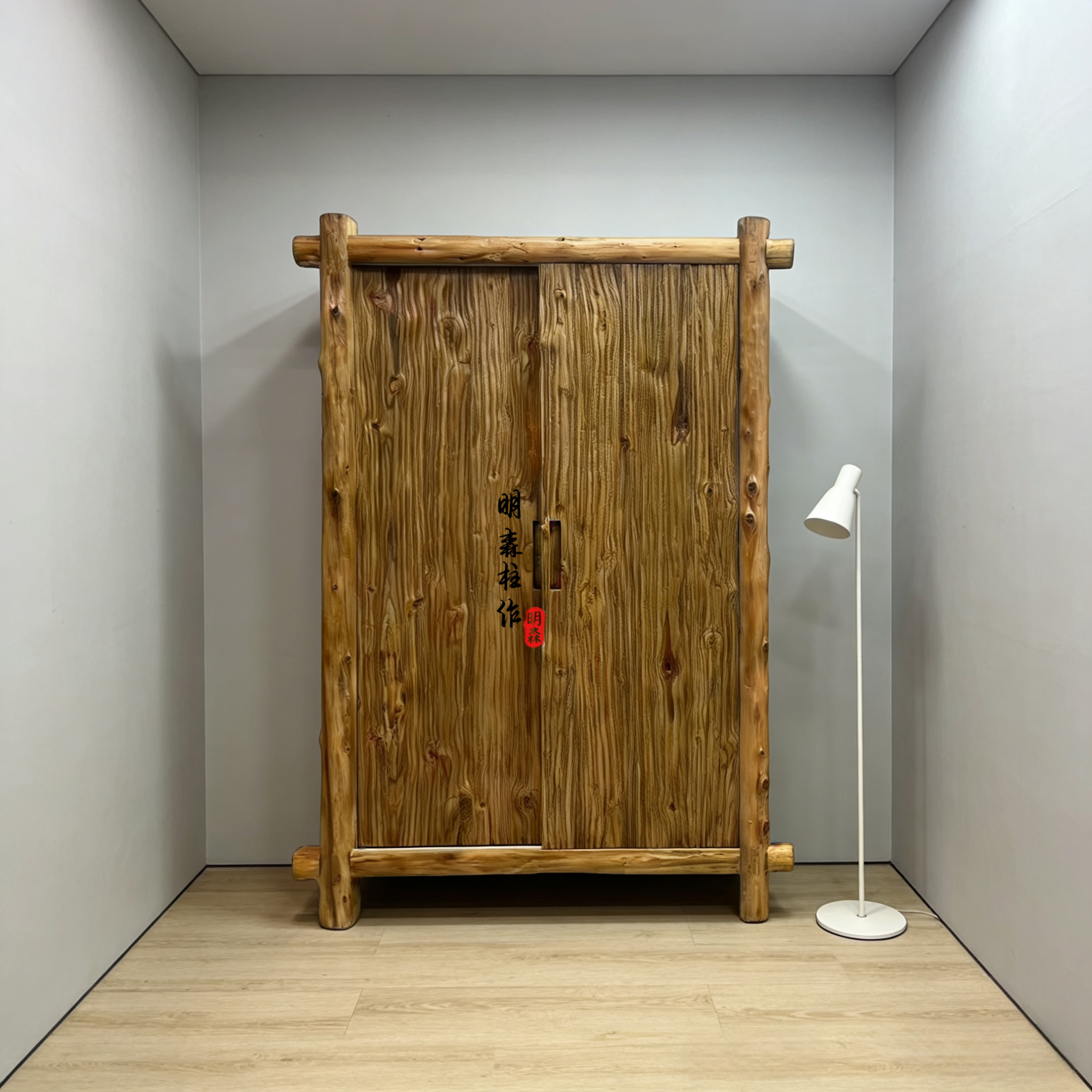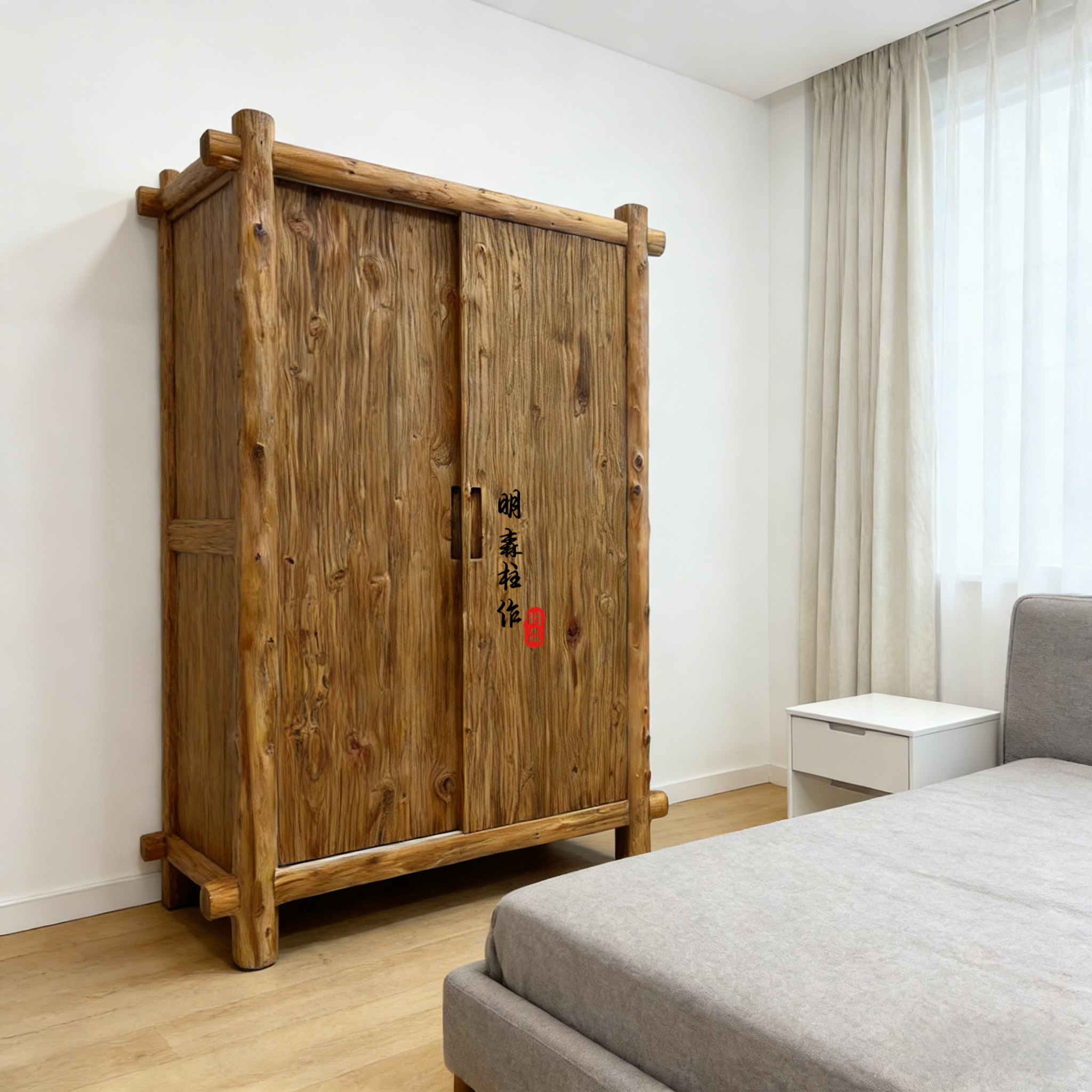 侘寂风家具民宿空间老木留疤衣柜中古风原木卧室实木衣橱侘寂美学