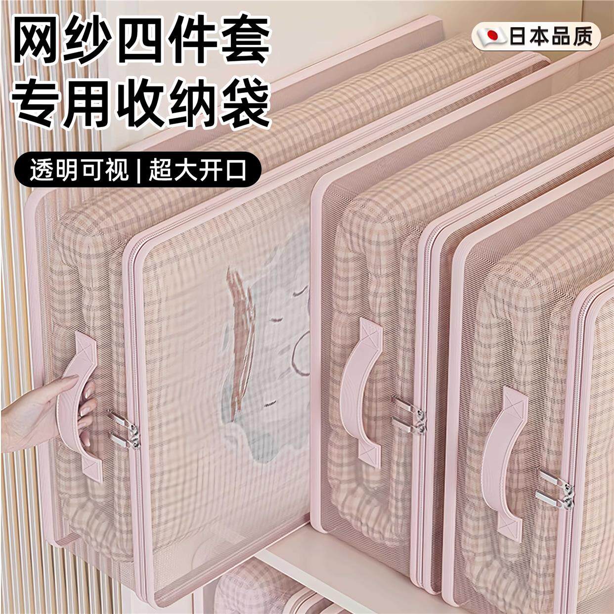 日本网纱四件套专用收纳袋换季床单空调被罩收纳包防尘透明整理包