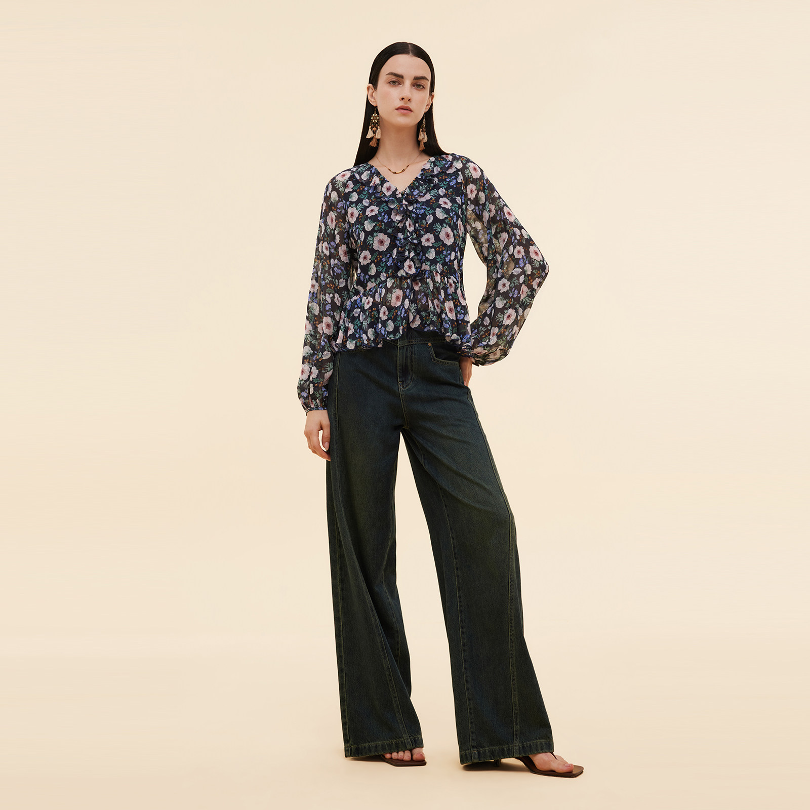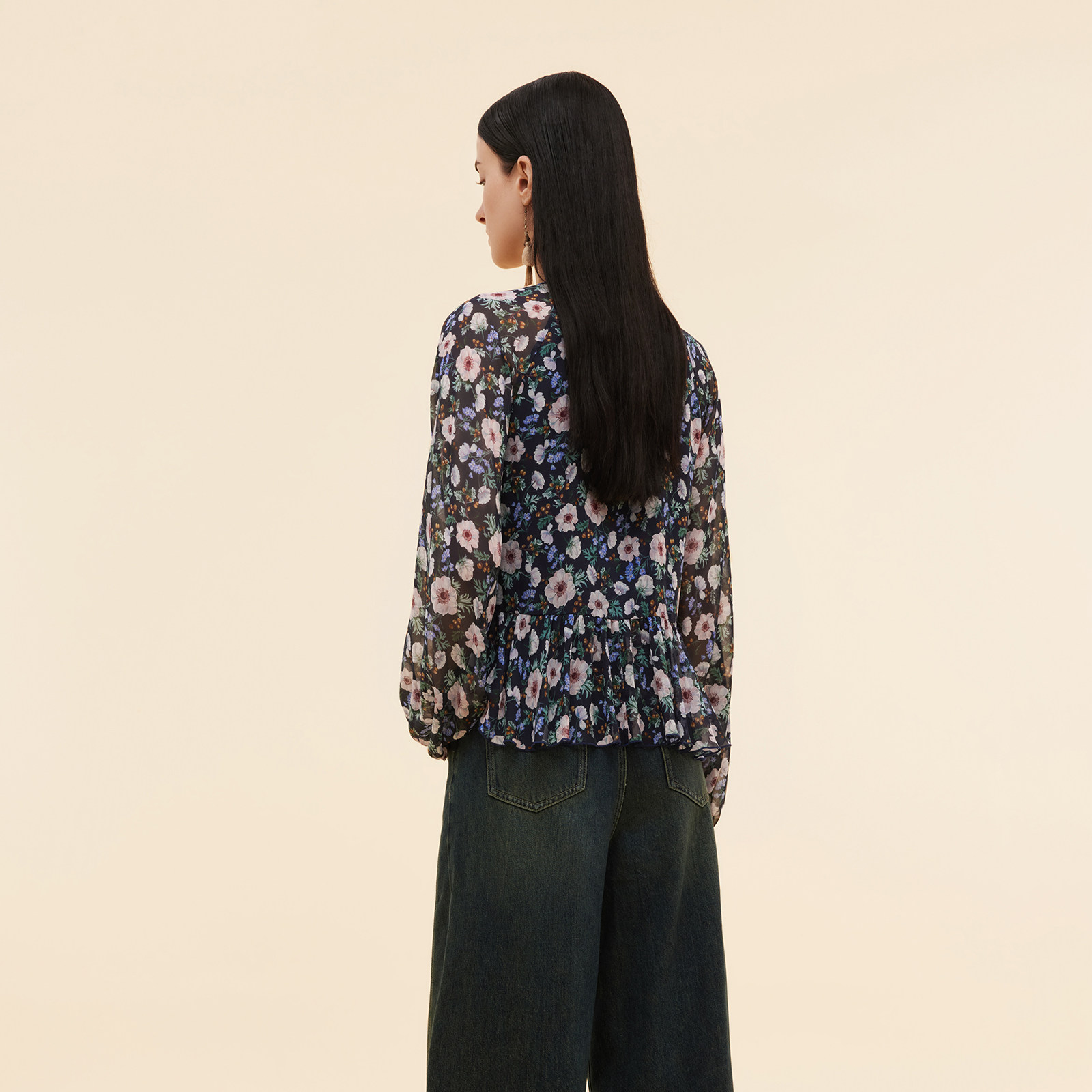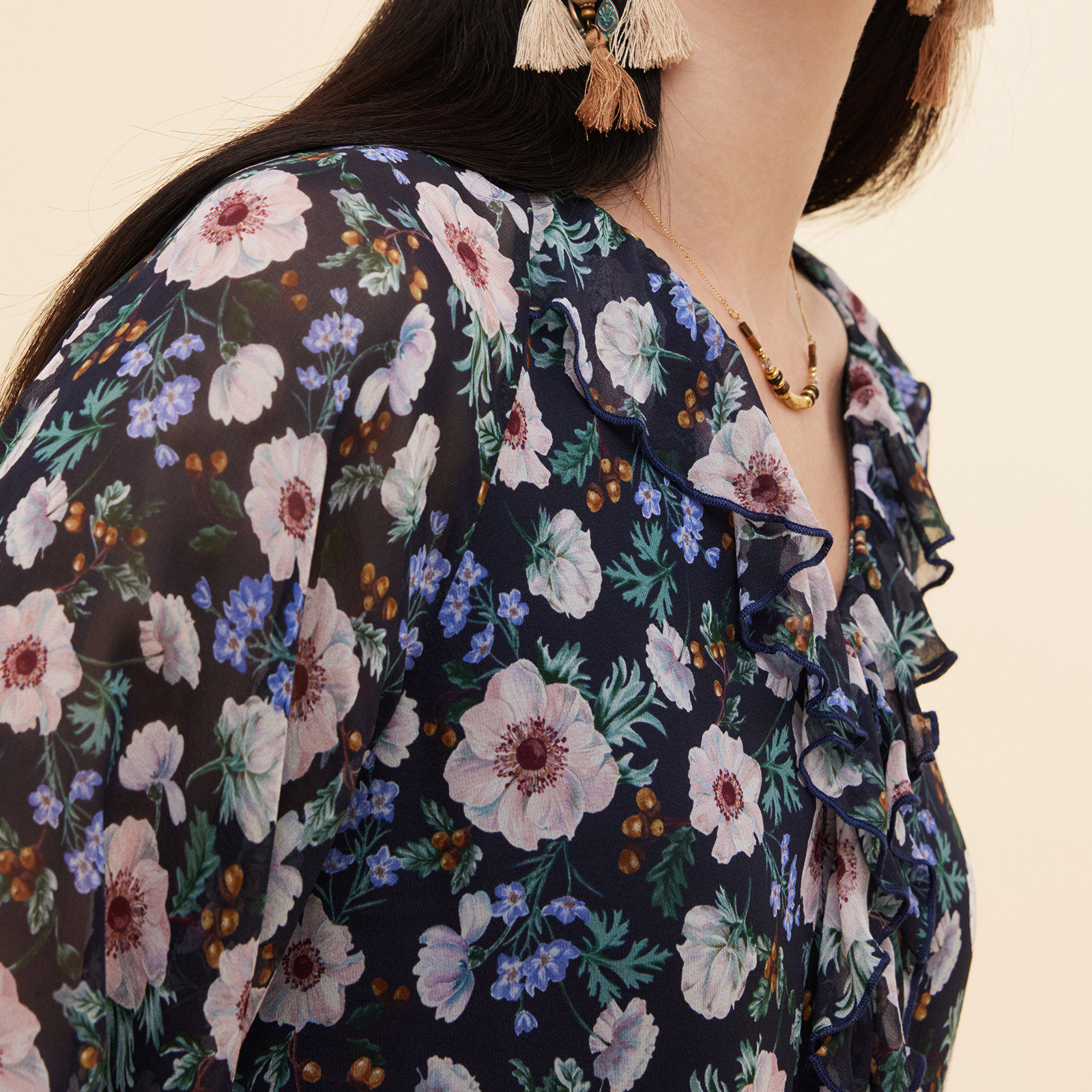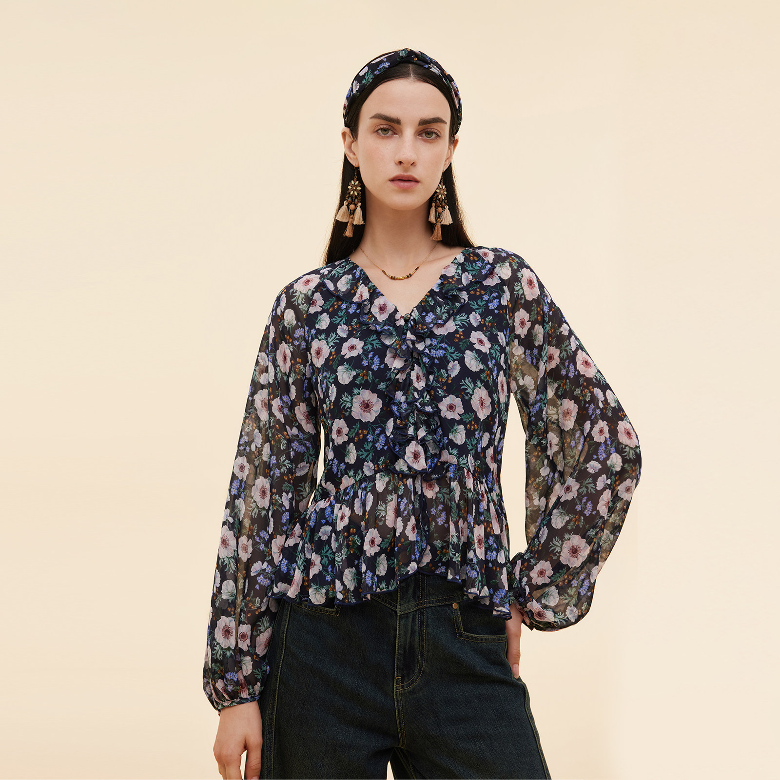 直降3折|歌莉娅真丝上衣女早秋流行穿搭桑蚕丝印花长袖