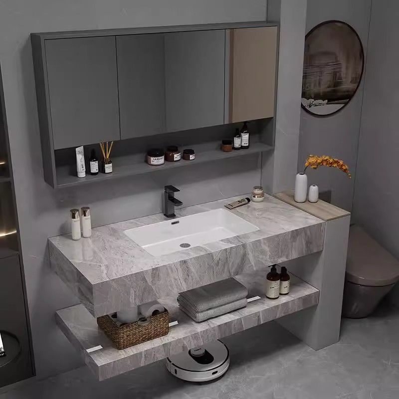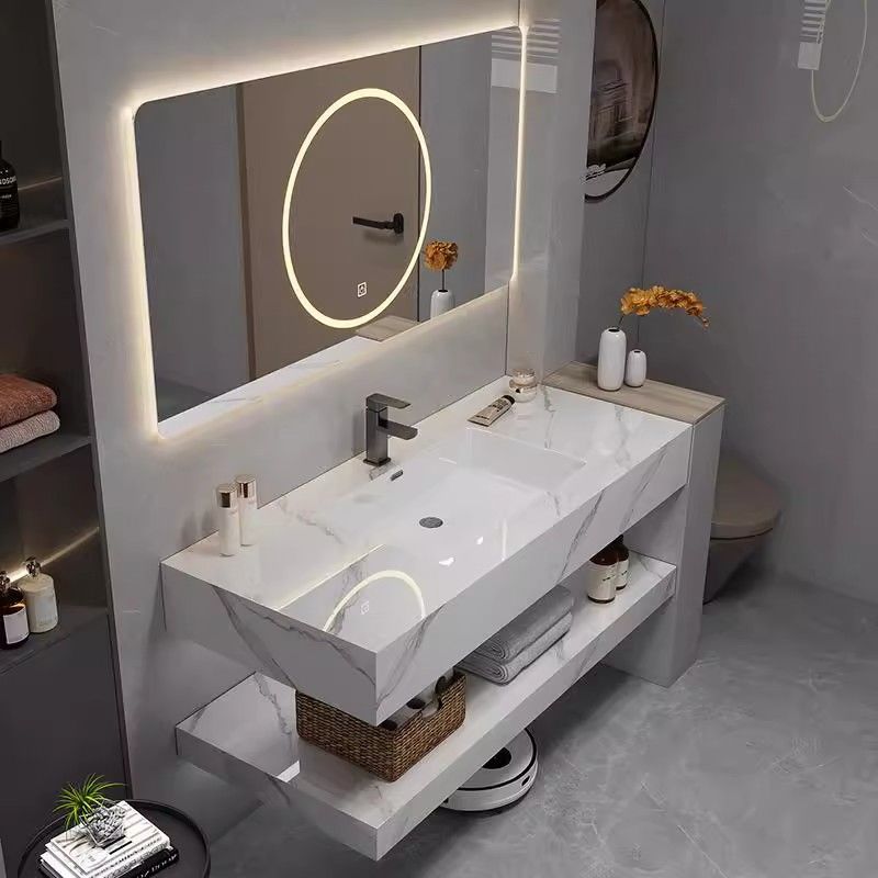 樱慈双层岩板陶瓷一体浴室柜无缝洗脸盆酒店组合定制卫生间洗漱柜