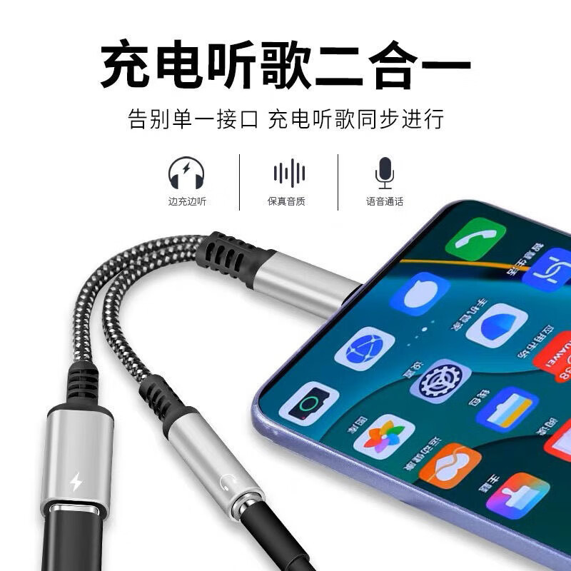 适用西伯利亚MG-1 MG-2电竞游戏耳机转接线TYPE-C手机耳机转换器3.5mm圆孔连小米华为OPPO红米VIVO手机连接线