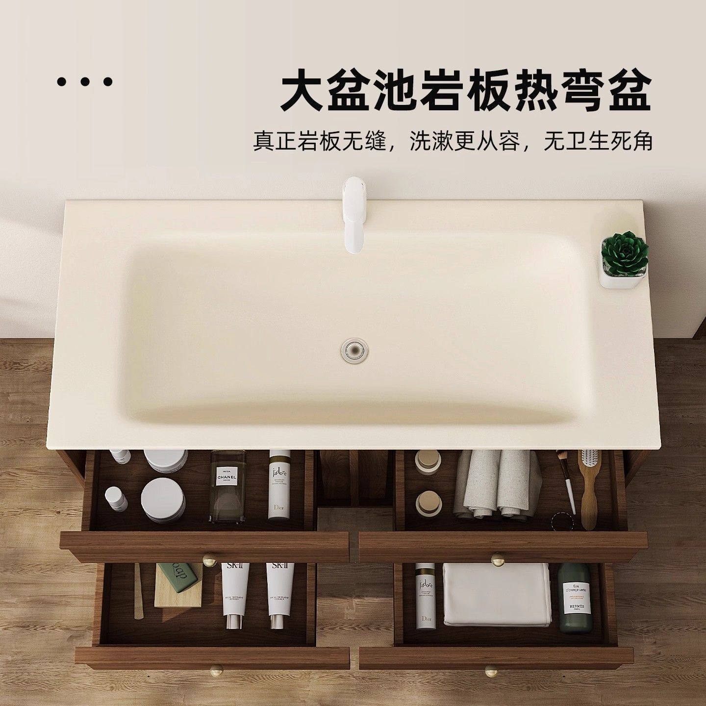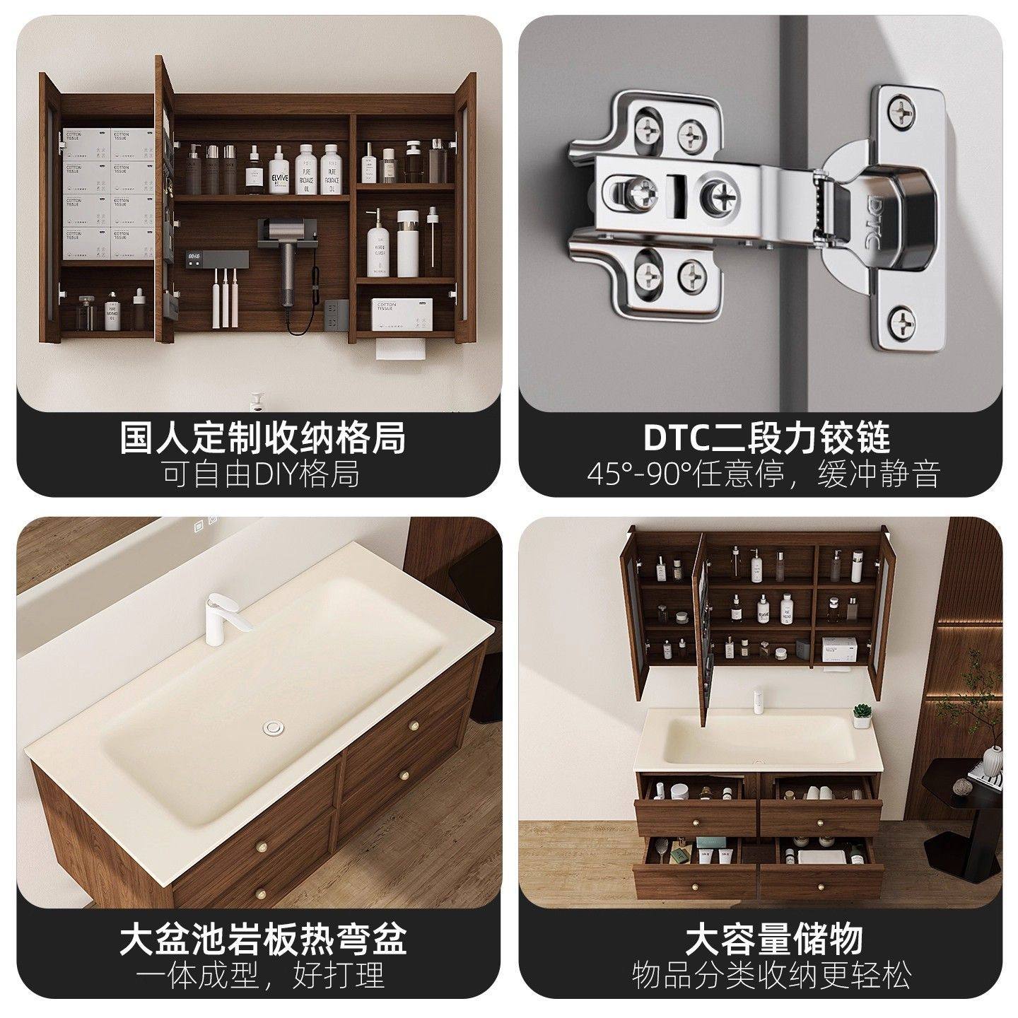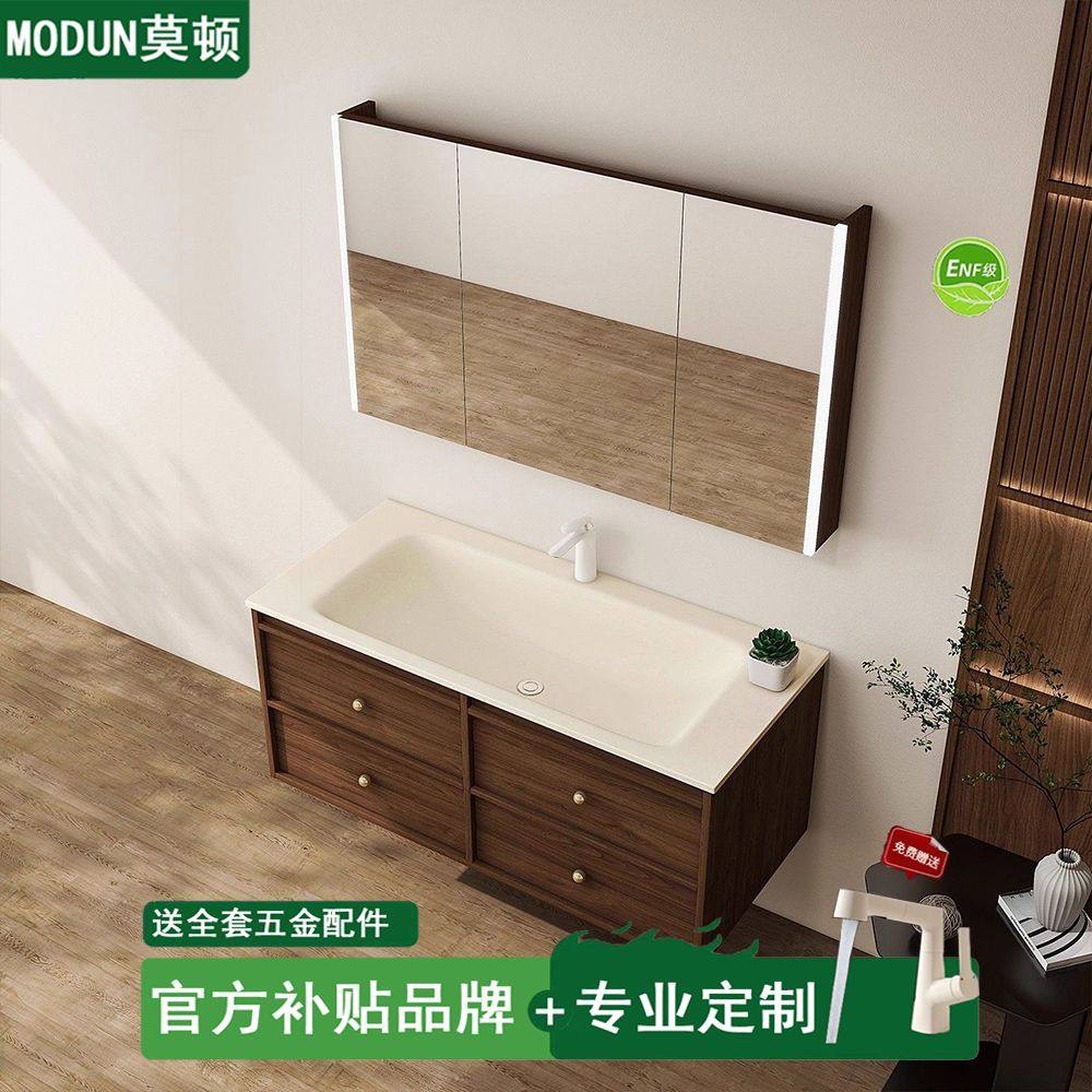 莫顿复古中古风岩板热一体盆浴室柜组合卫生间洗漱台面洗脸盆智能
