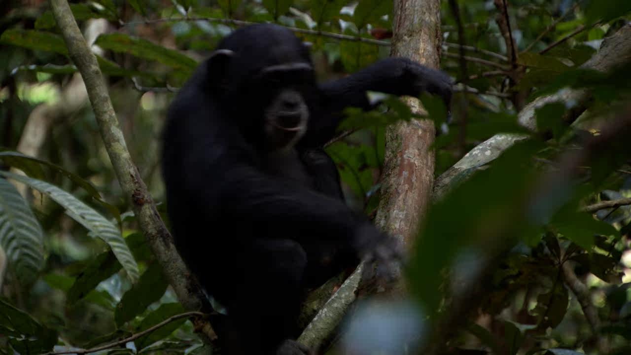 502-4K视频素材-大猩猩类人猿森林原始观望群体生命自然玩耍跳跃
