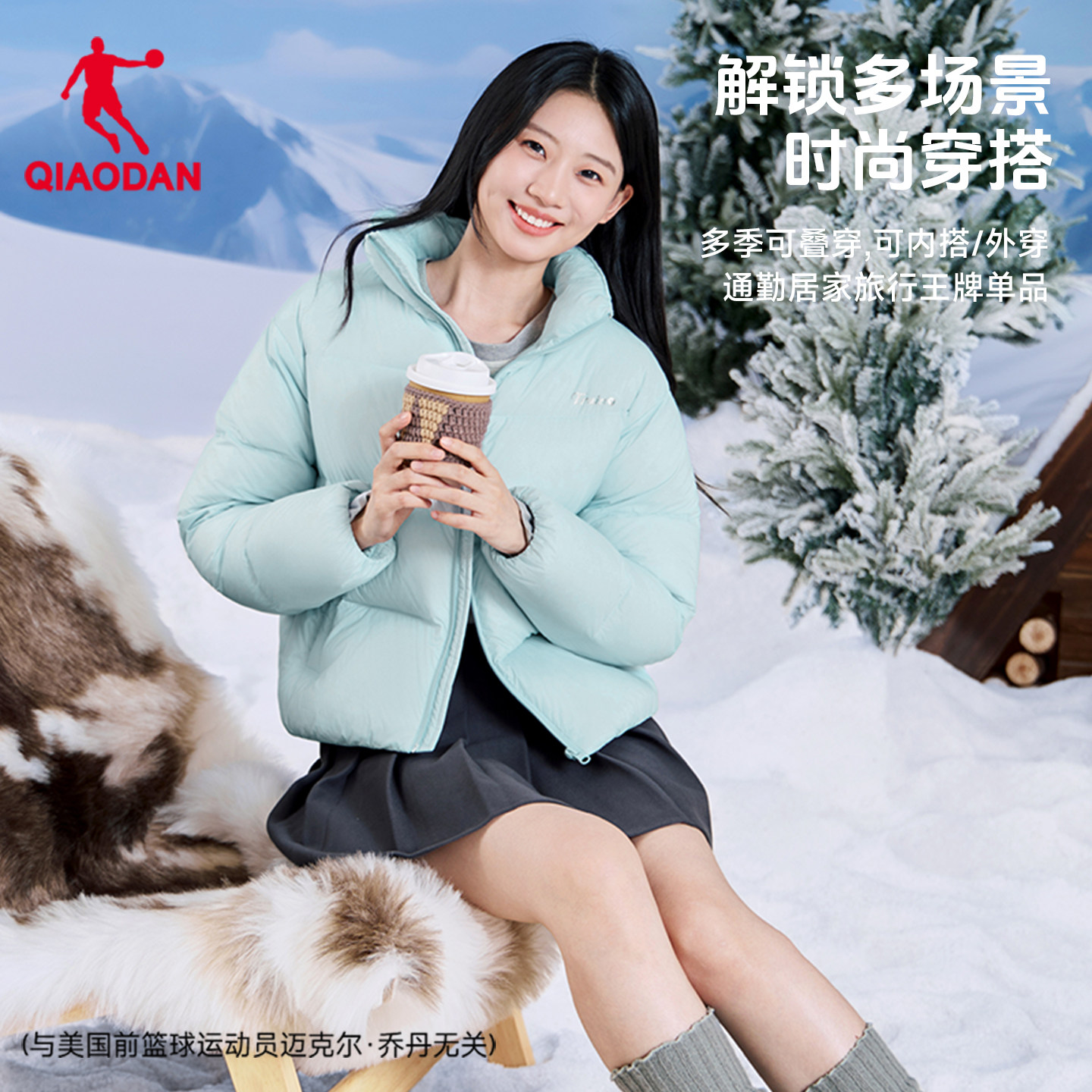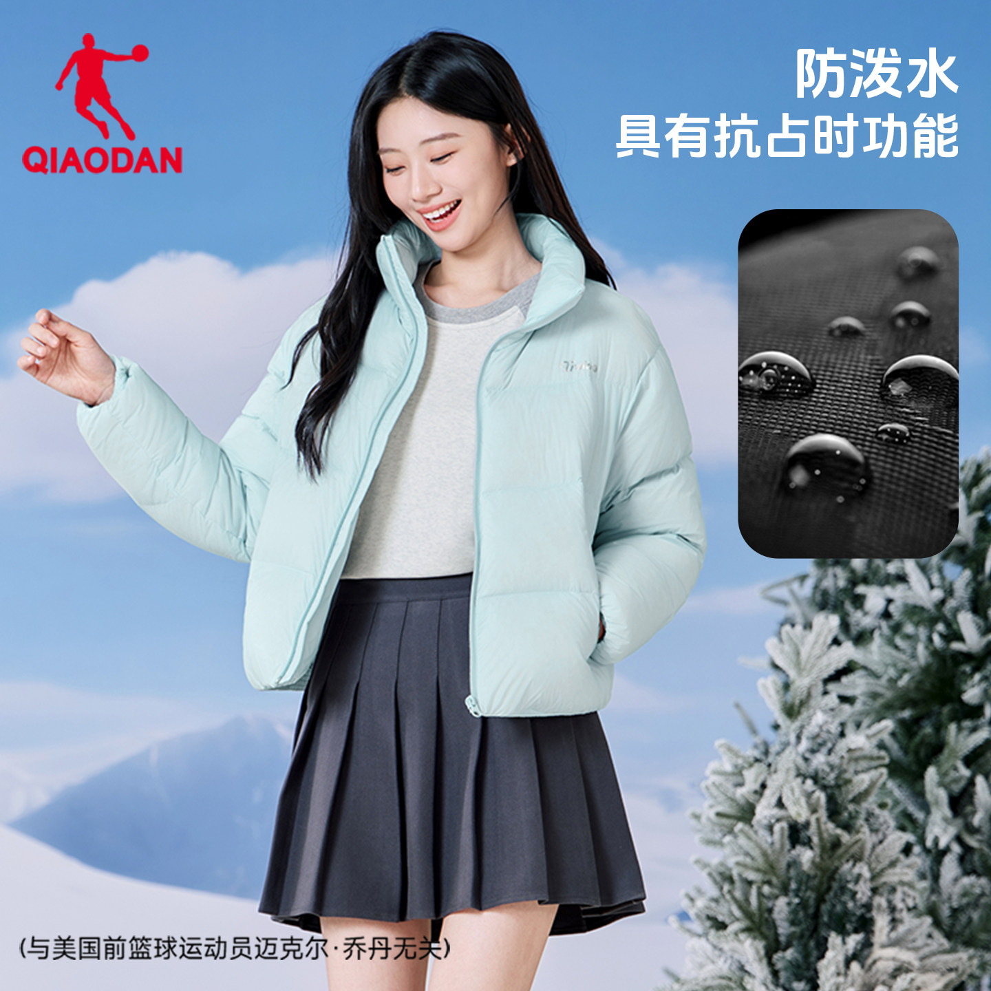 乔丹轻薄羽绒服女士抗静电2025冬季新款短款加厚外套立领面包服装