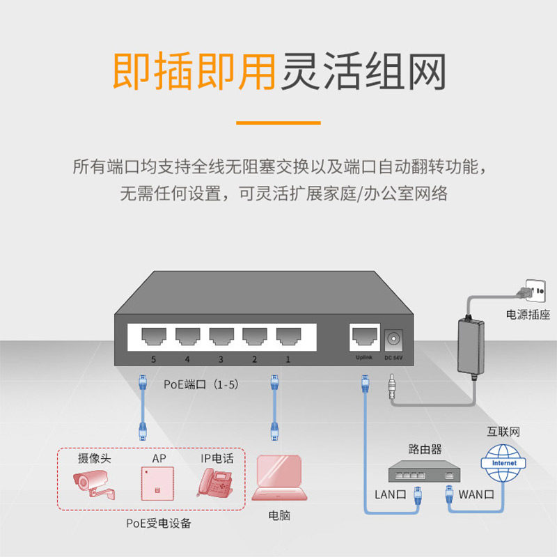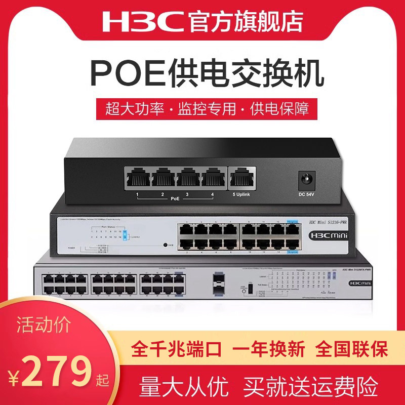 H3C/新华三5口8口9口poe供电交换机S5G-P千兆网线分线器S9G-P网络分流五口八口监控集线器家用摄像头监控