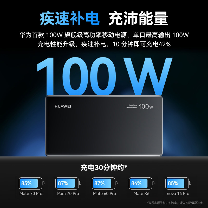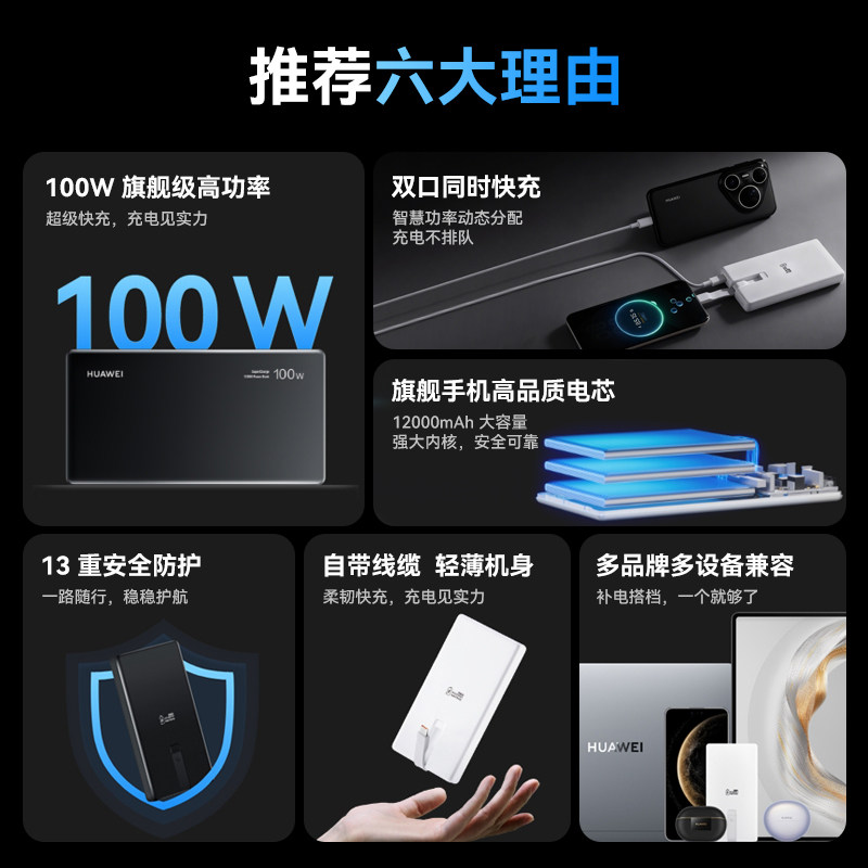 华为100W充电宝自带线全能充移动电源快充12000毫安3C认证上飞机