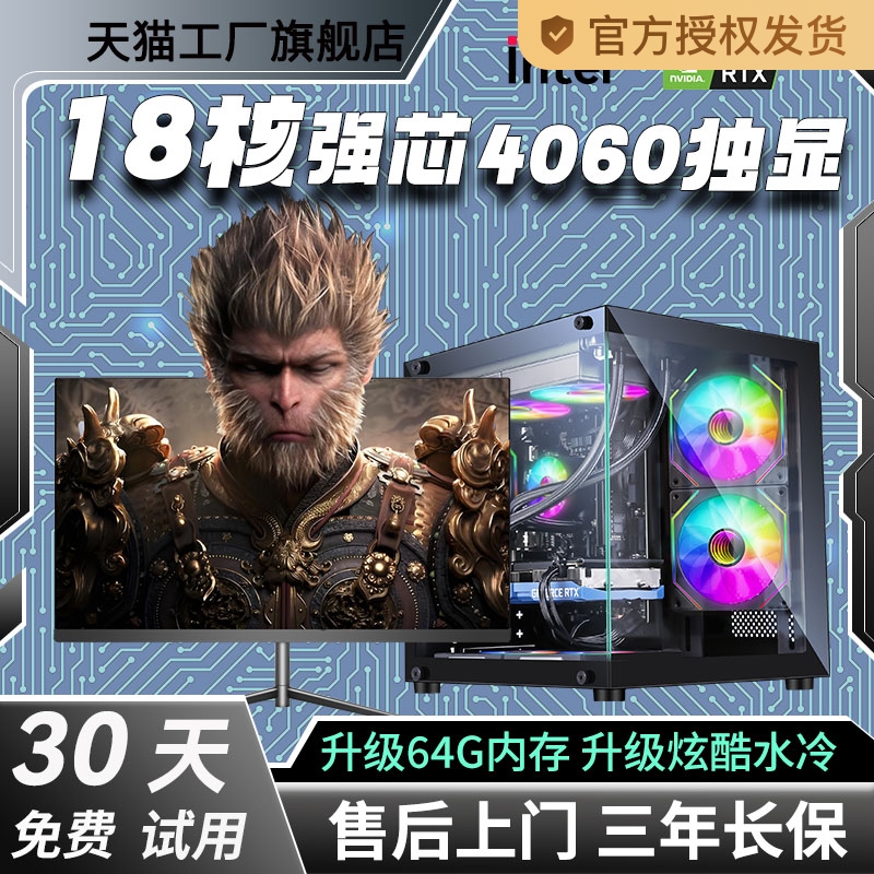 【2024新款】酷睿i9台式电脑主机18核高配装机组装e5多开游戏i5办公收银家用直播兼容机电脑4060显卡游戏DIY