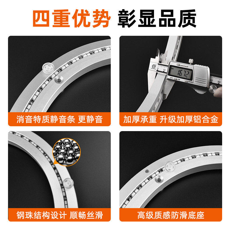 餐桌转盘底座旋转消音轴承家用饭桌玻璃圆桌大理石转芯轨道滑轮