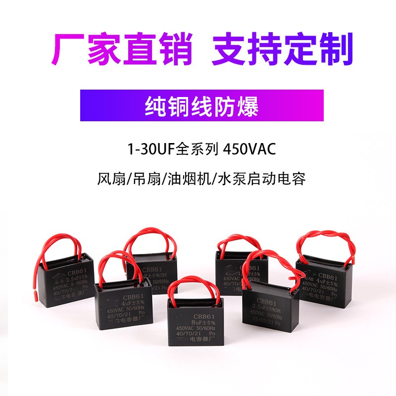 CBB61风扇启动交流电容1.5UF 450V落地扇吊扇油烟机电容 价格优势