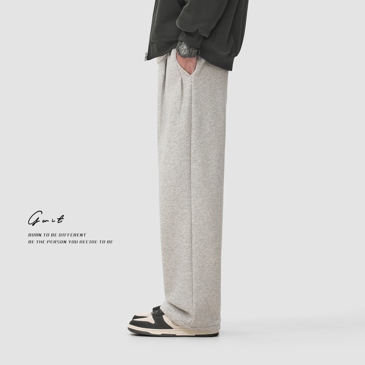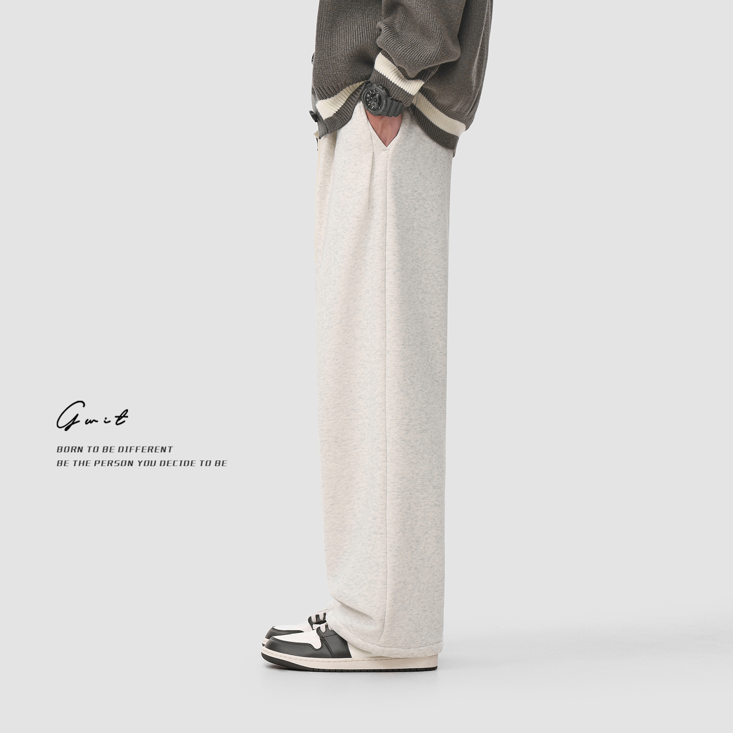 GWIT 三色加绒经典款垂感阔腿卫裤冬季重磅加厚保暖运动休闲裤男