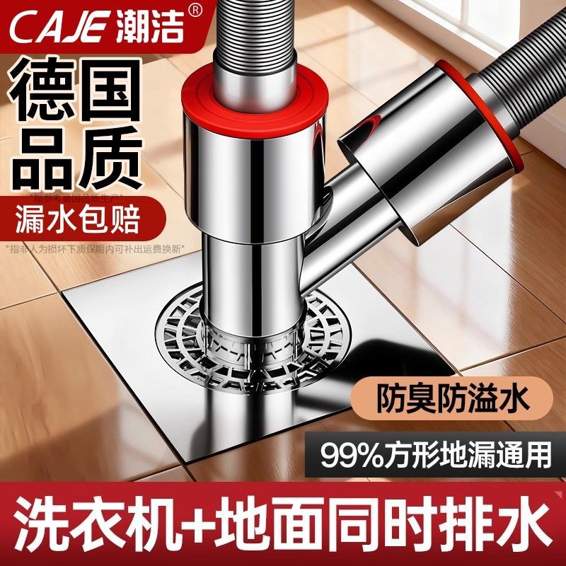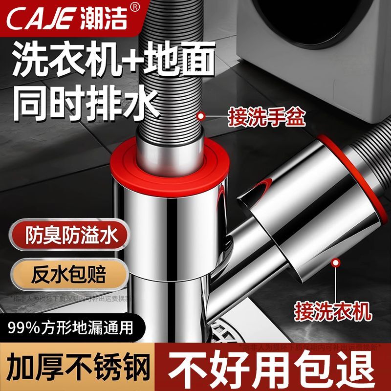潮洁洗衣机排水管地漏接头二合一下水管道分流器阳台防反水三头通