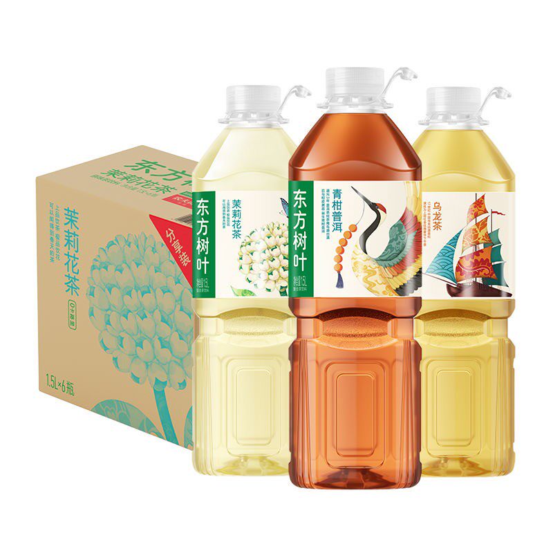 农夫山泉东方树叶无糖茶饮料普洱茉莉花茶饮料1.5L大瓶分享装整箱