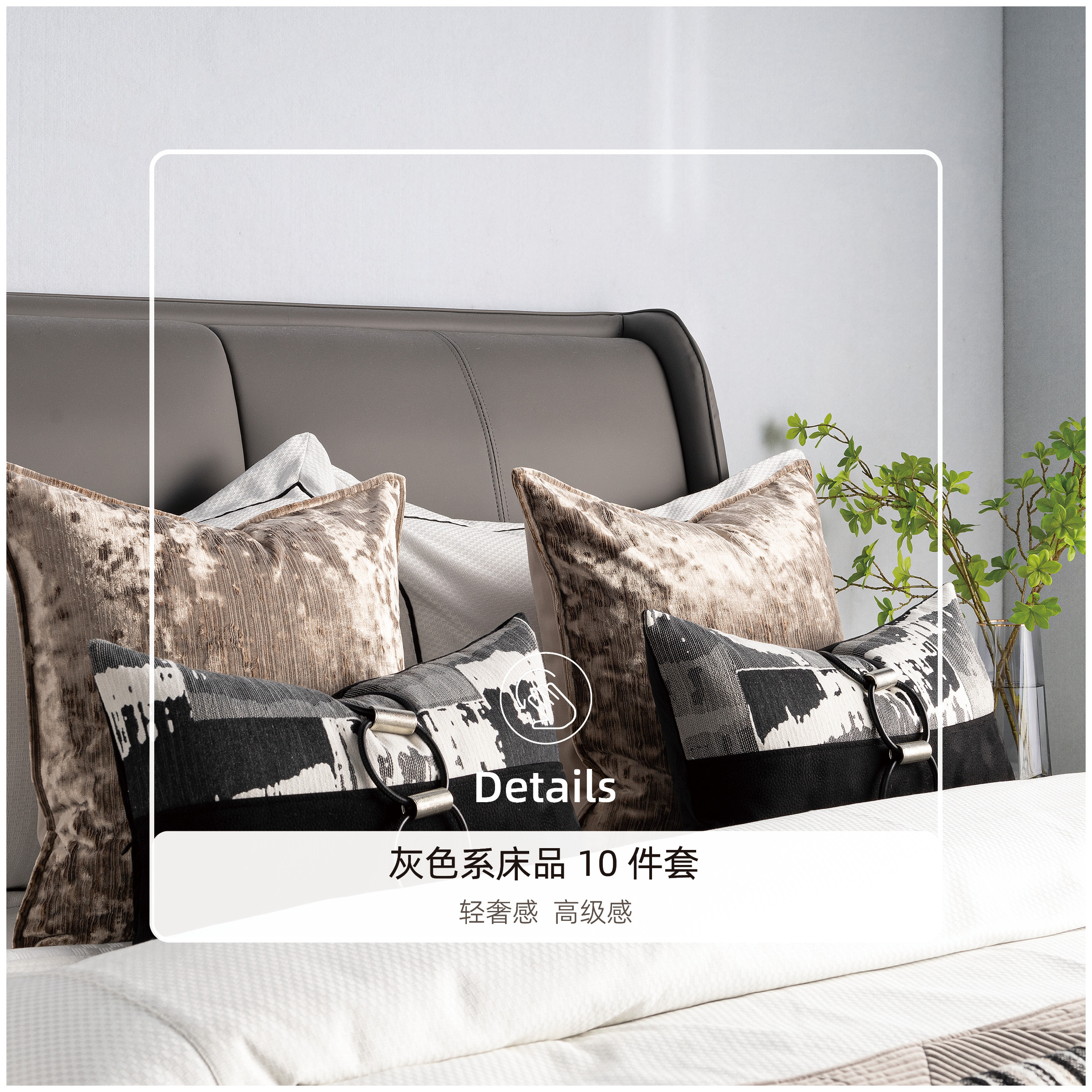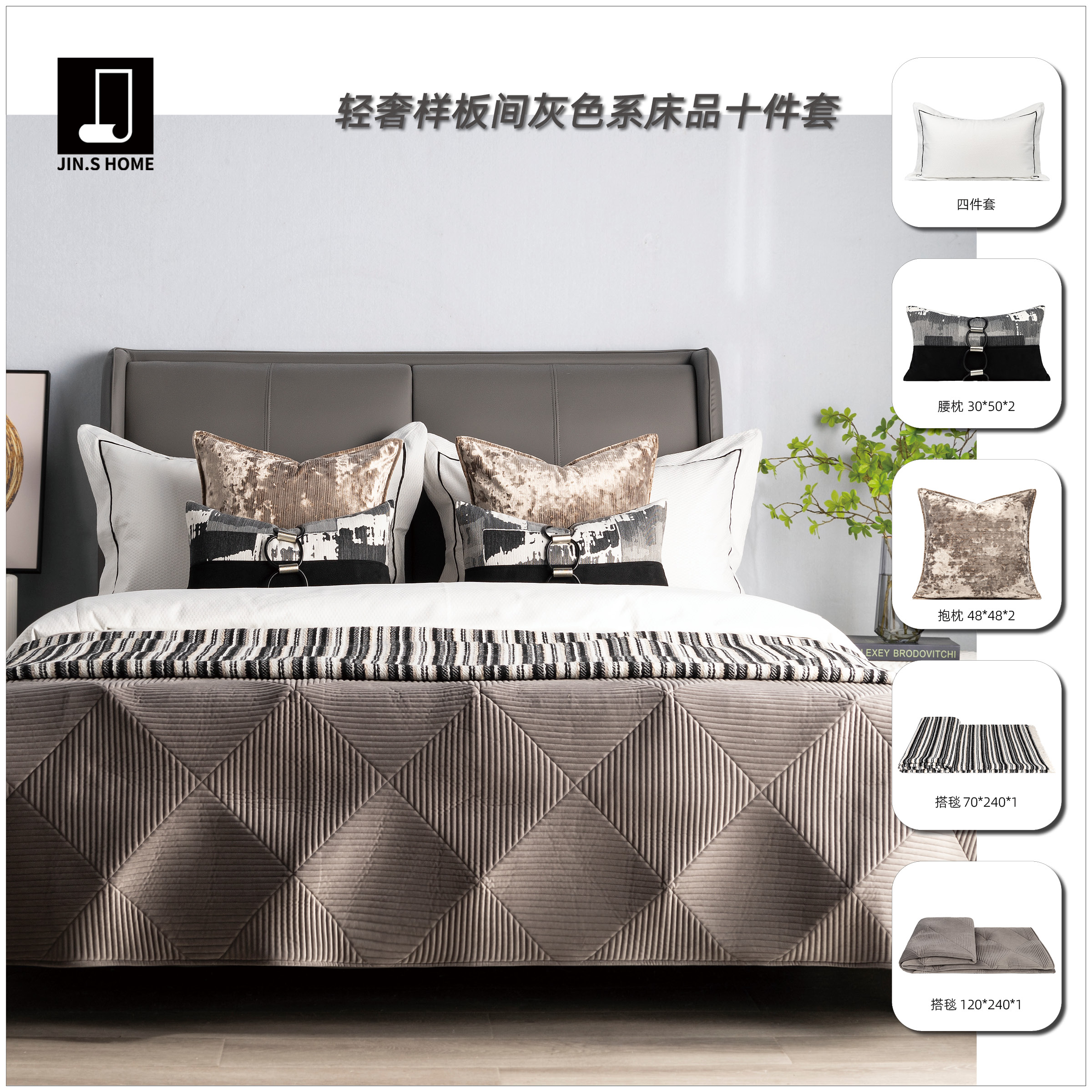 现代轻奢样板间灰色系床上用品10件套酒店家具展厅床品套件四件套
