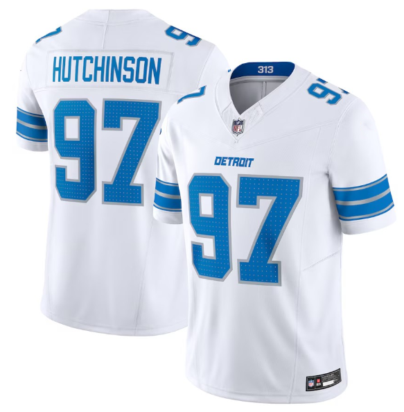 2024新款雄狮队橄榄球服Detroit Lions 97号HUTCHINSON球衣 刺绣