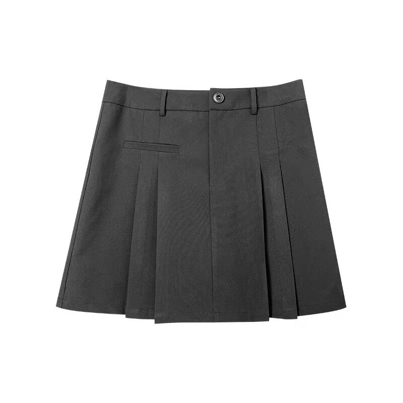 深灰色百褶西装短裙女夏季新款大码胖mm遮肚显瘦高腰a字半身裙子