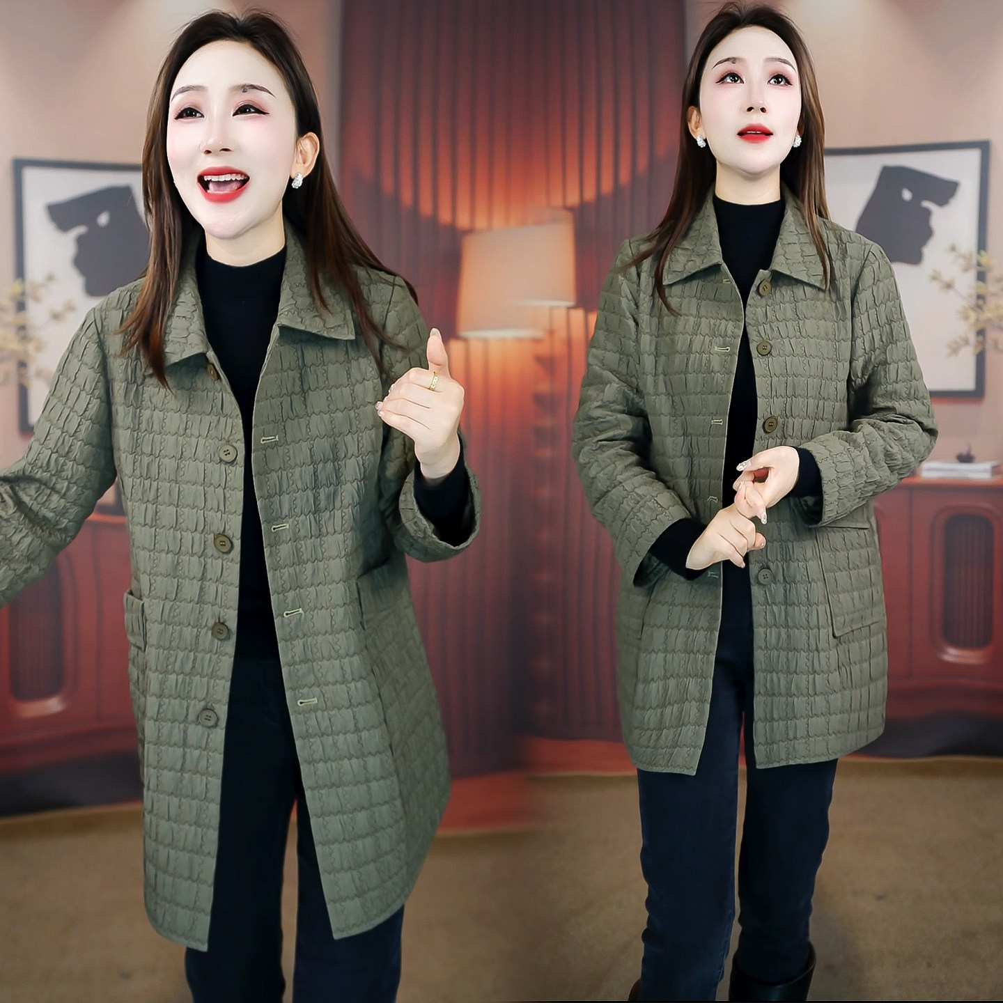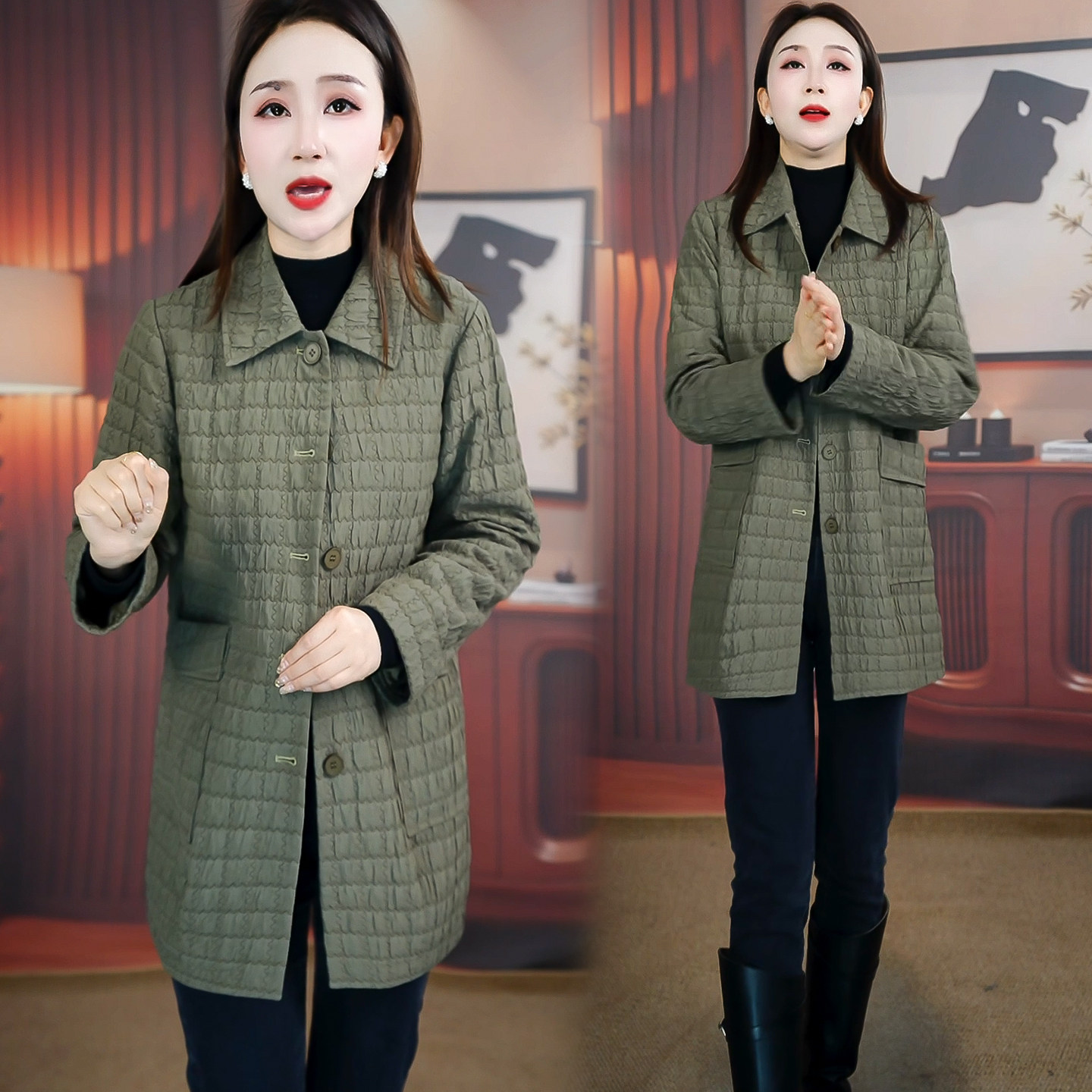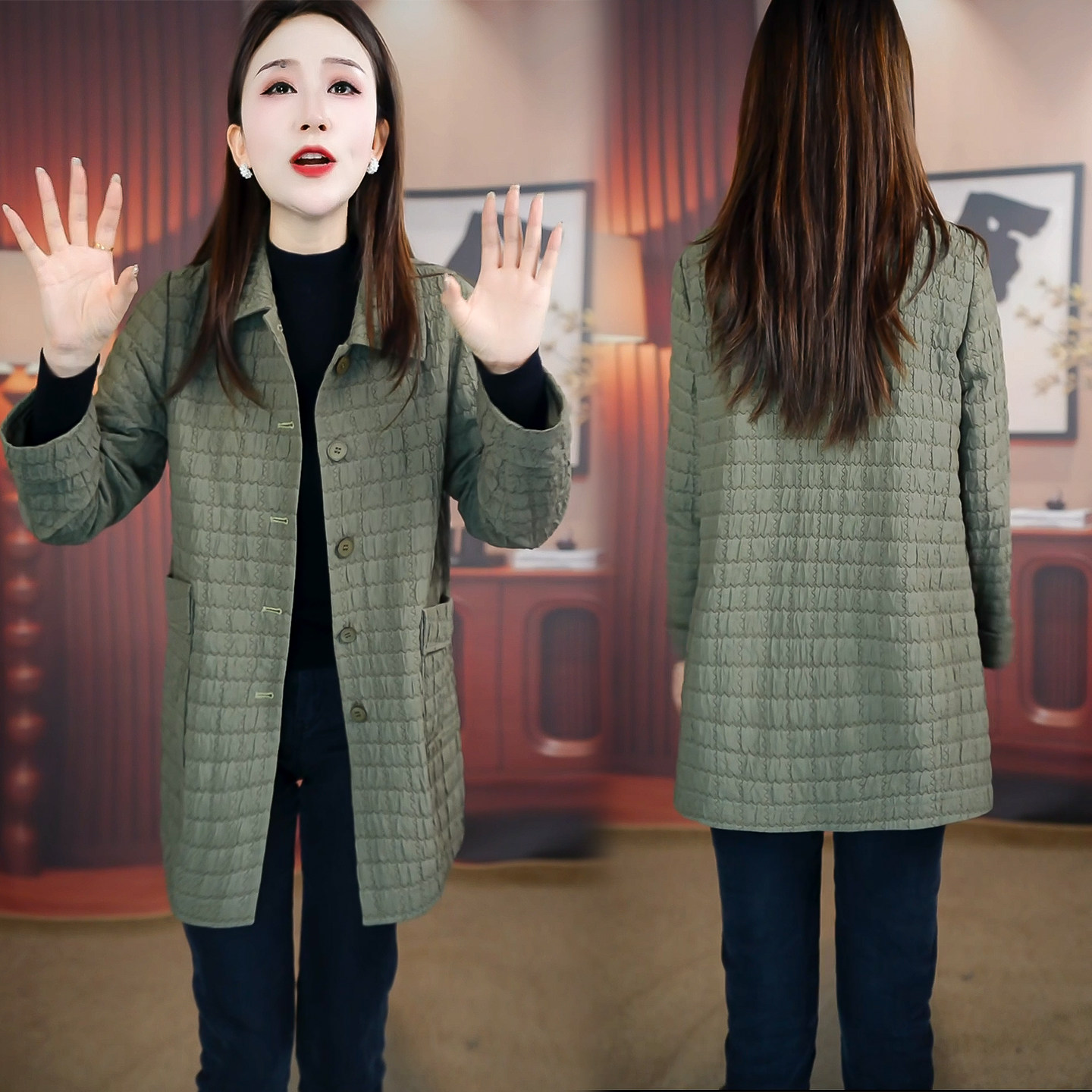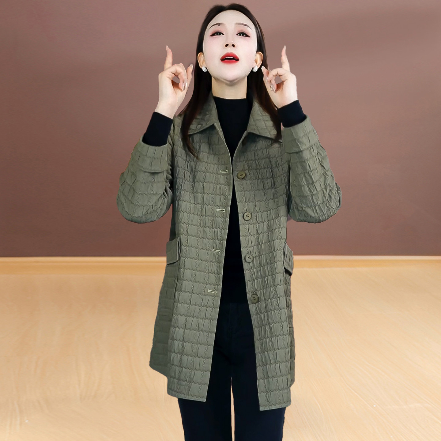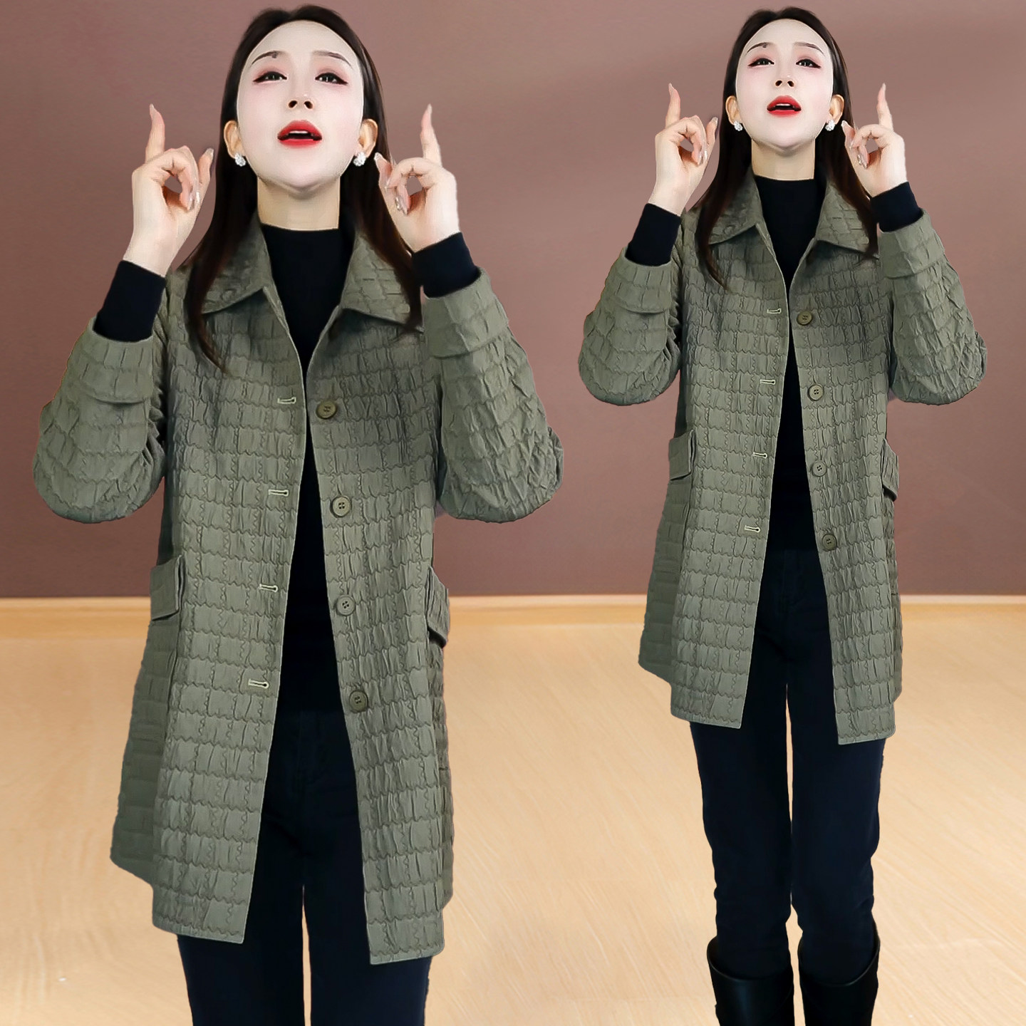 时尚休闲翻领外套女2026春秋新款女士气质宽松显瘦百搭中长款风衣