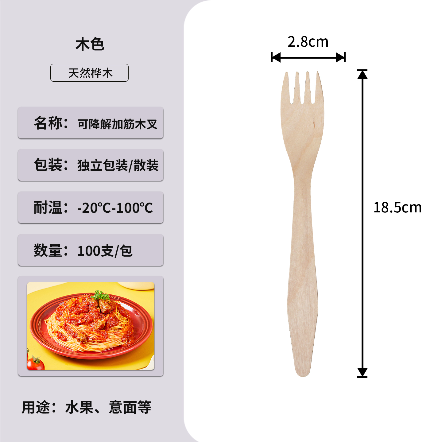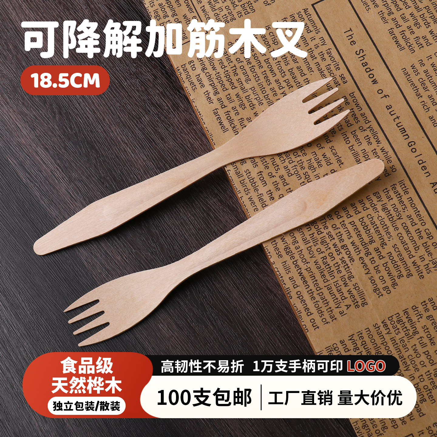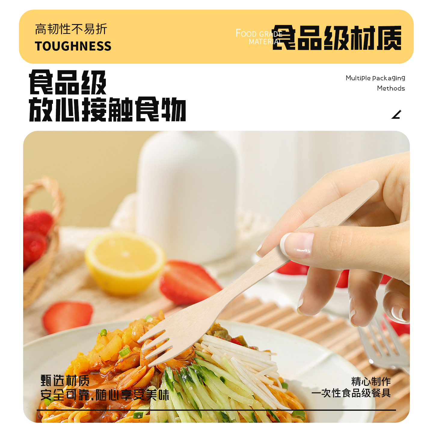 可降解一次性叉子独立包装木质西餐叉吃意面叉甜品水果便当沙拉叉