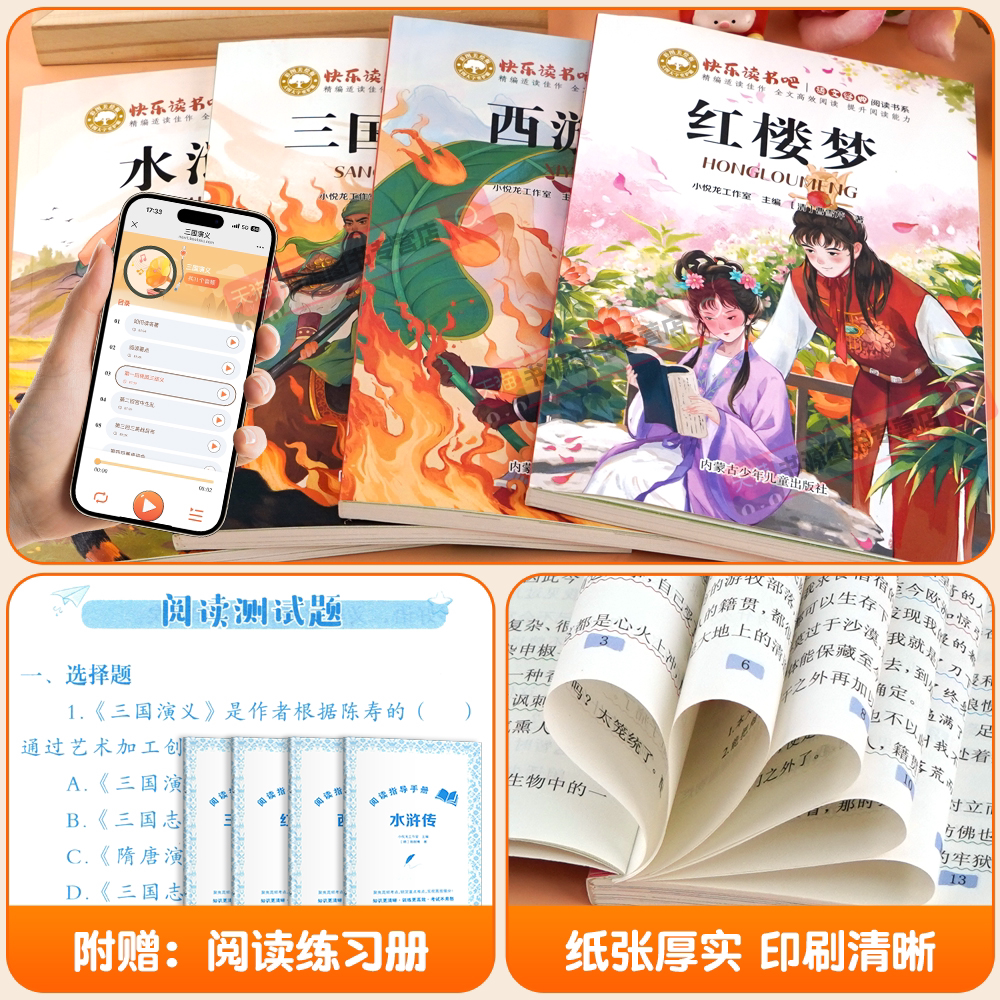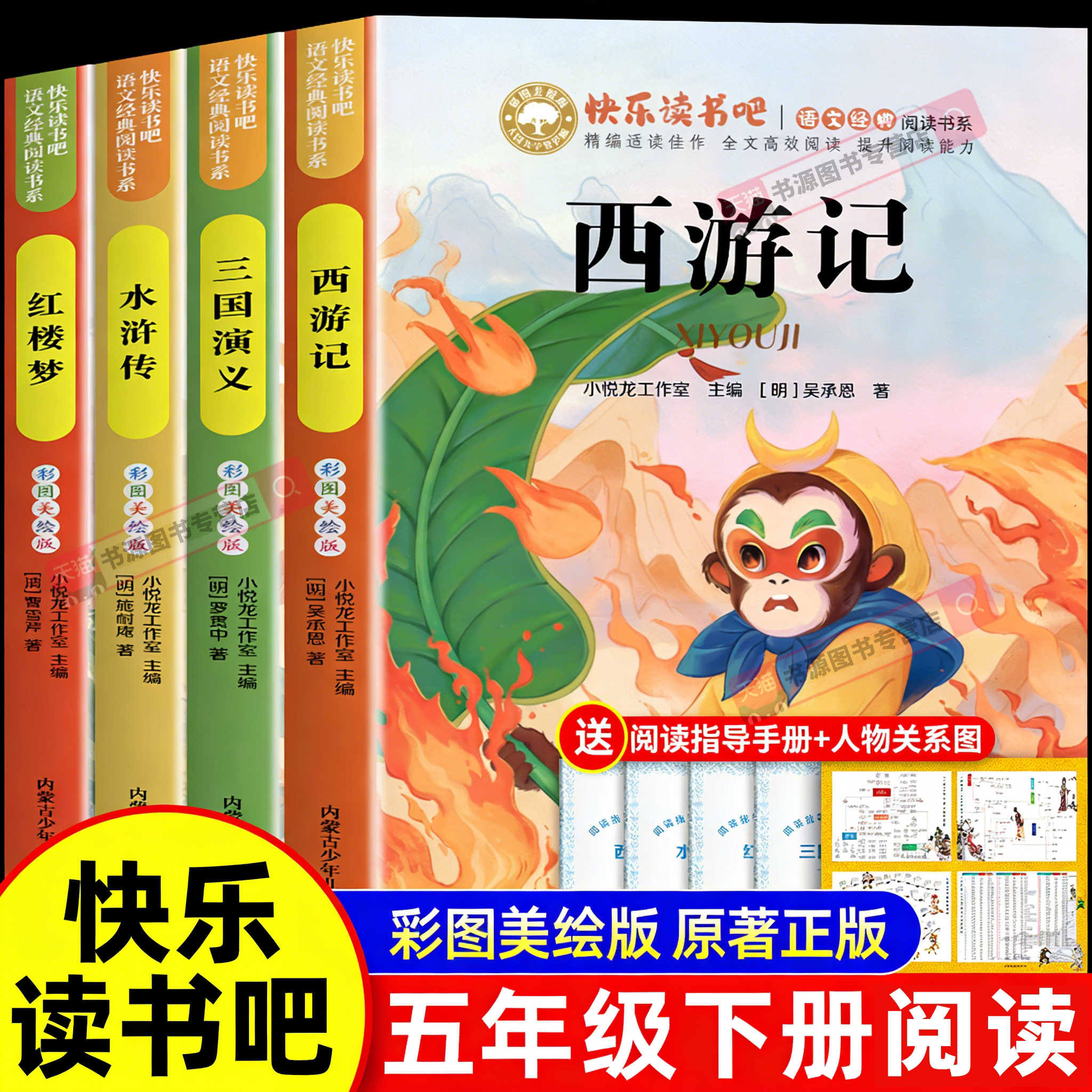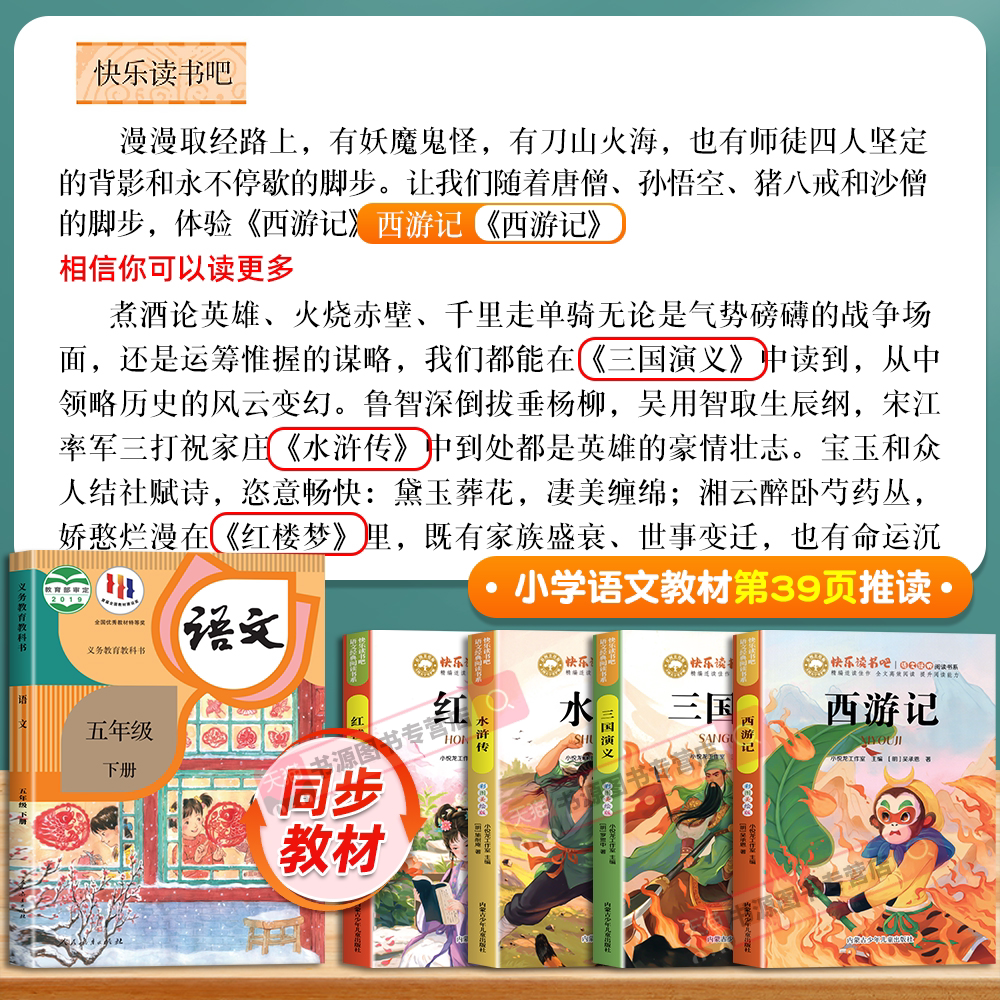 全4册四大名著红楼梦小学生版五年级下册必读的课外书原著正版三国演义青少年版本配套人教版快乐读书吧五下中国西游记水浒传5年级
