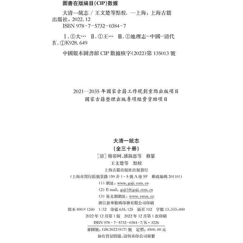 新书--大清一统志(全三十册)9787573203847上海古籍出版社正版现货