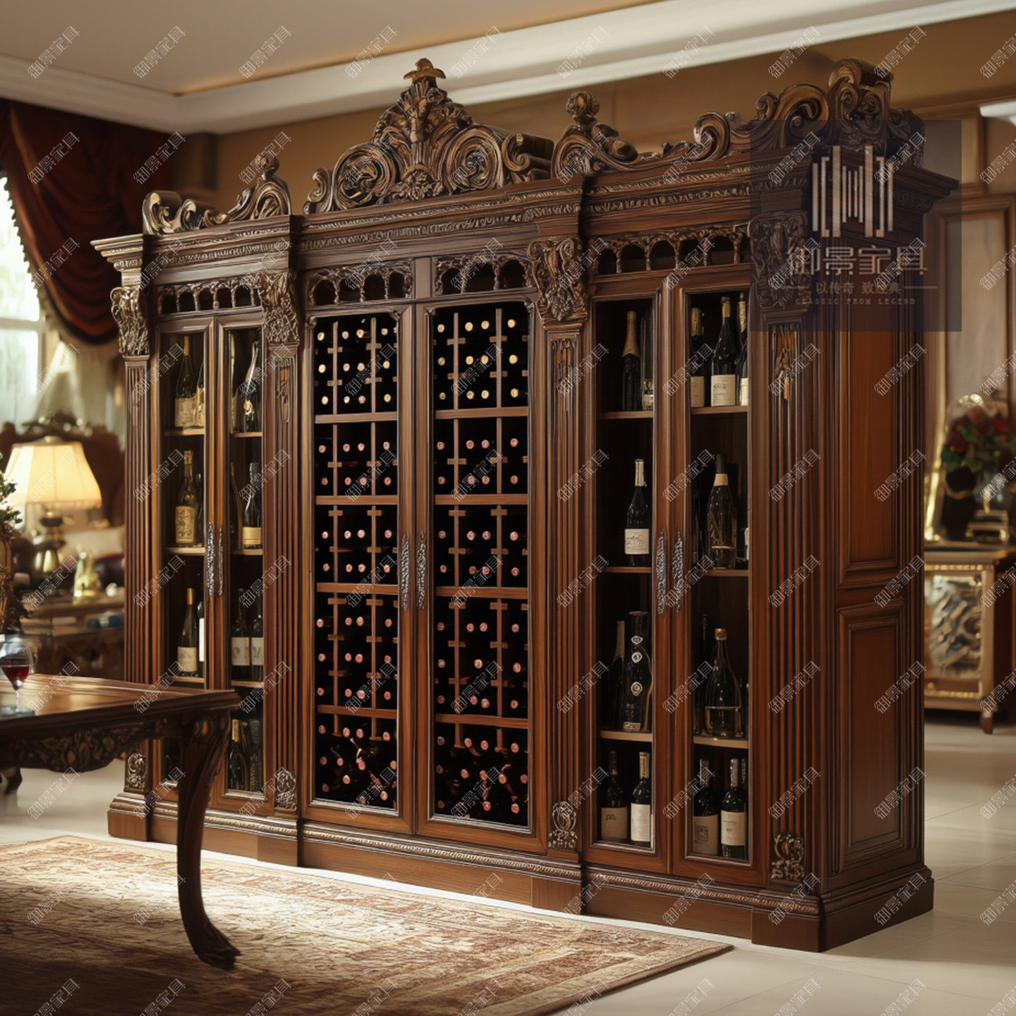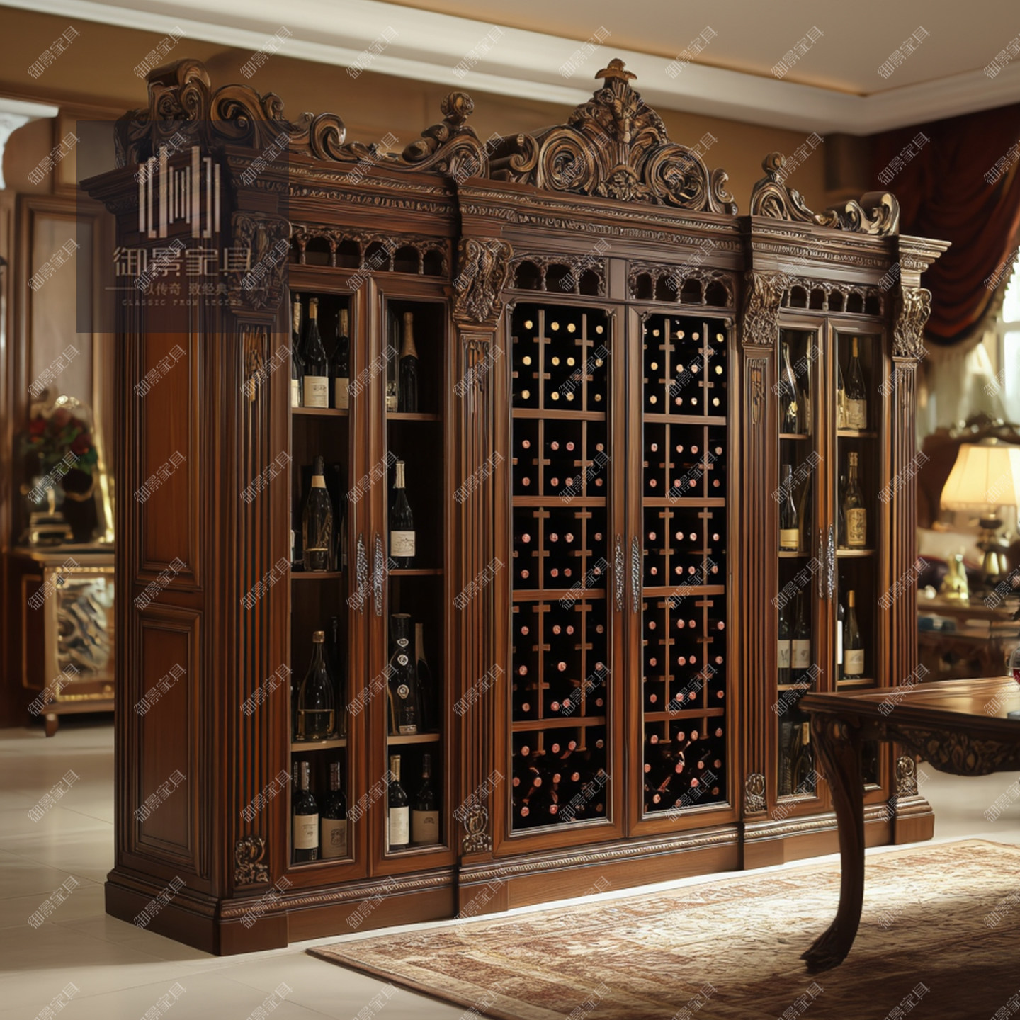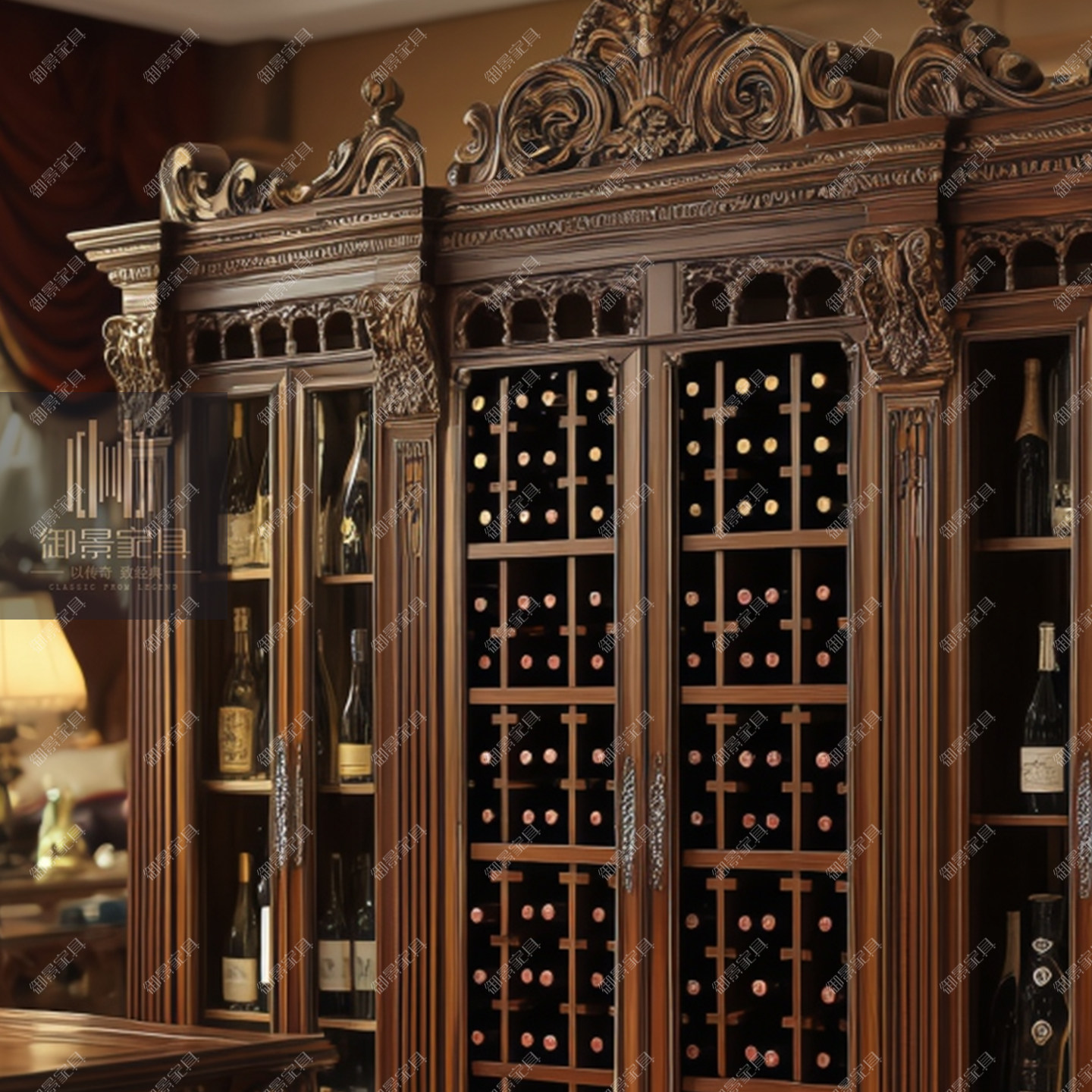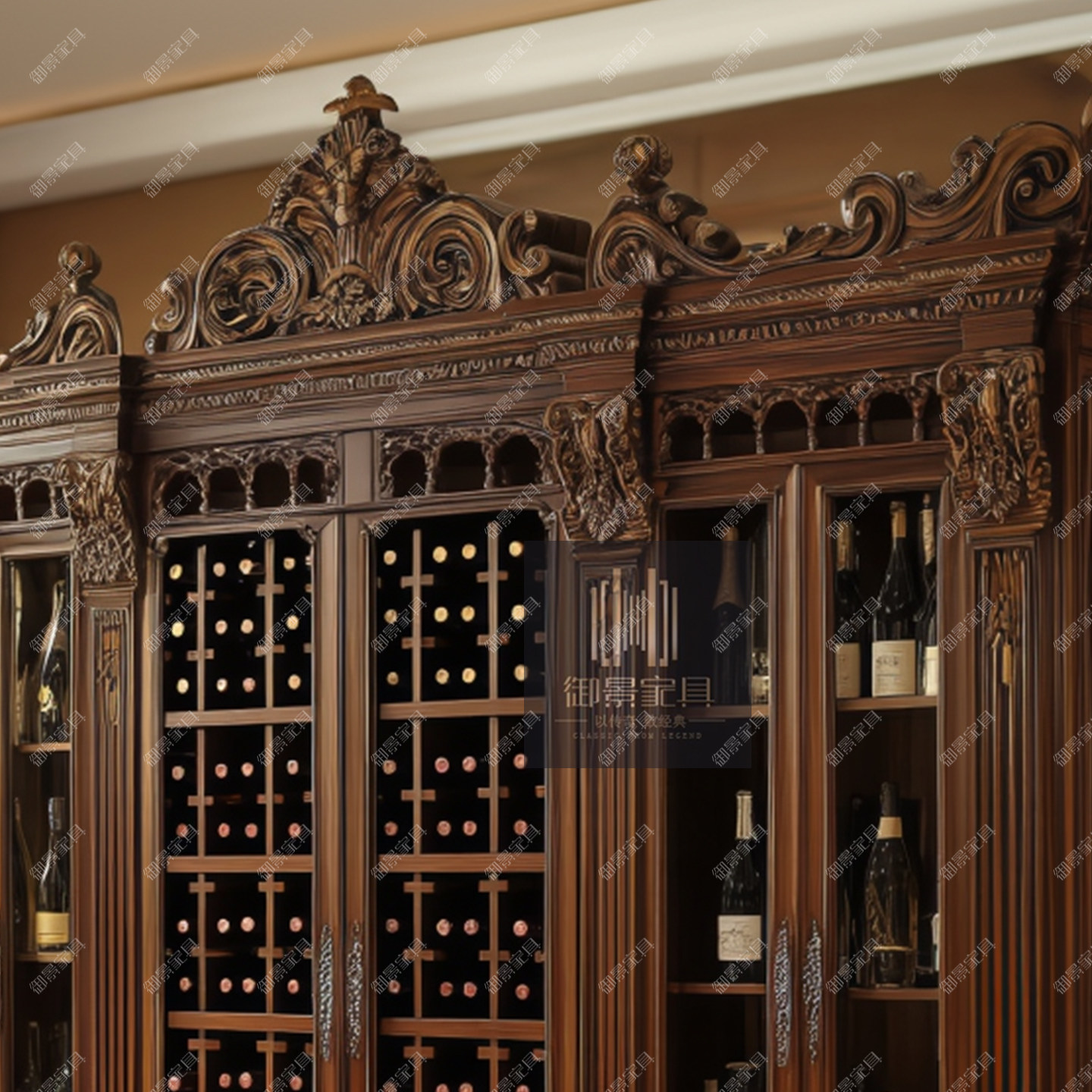 美式复古做旧六门酒柜定制展示柜茶叶柜法式宫廷住宅家具客厅柜子