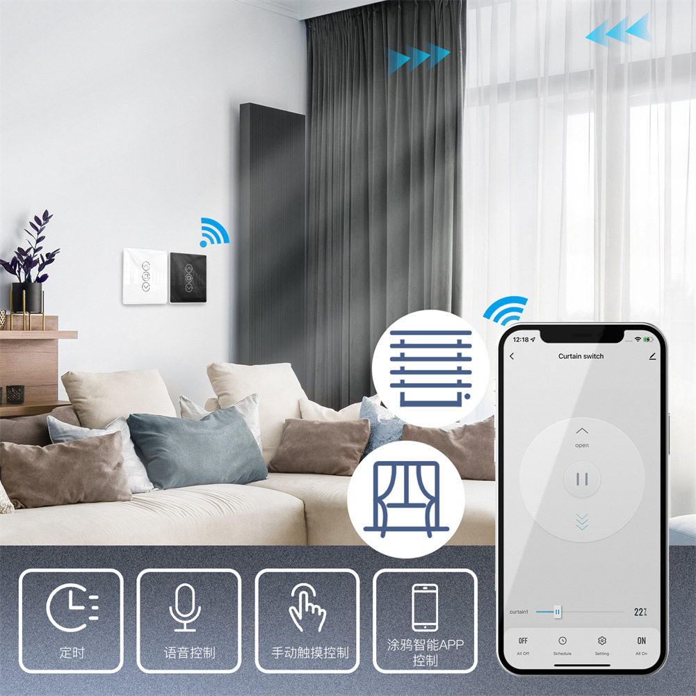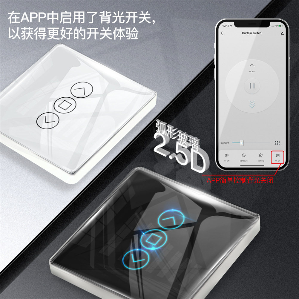 定制WiFi涂鸦智能窗帘开关2.5d触摸面板app遥控定时弧形窗帘开关