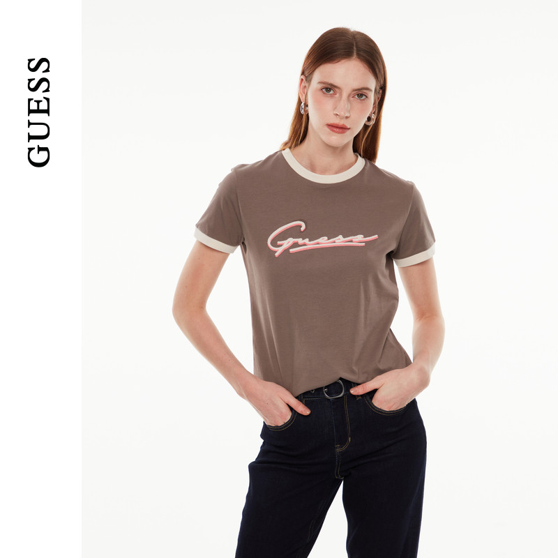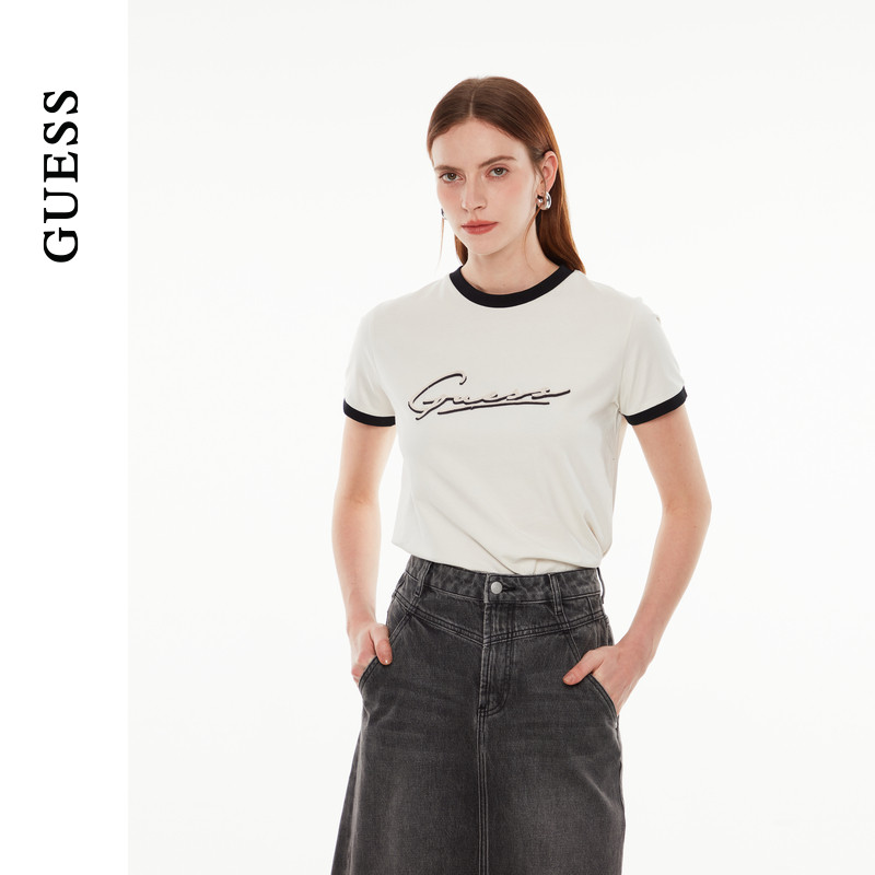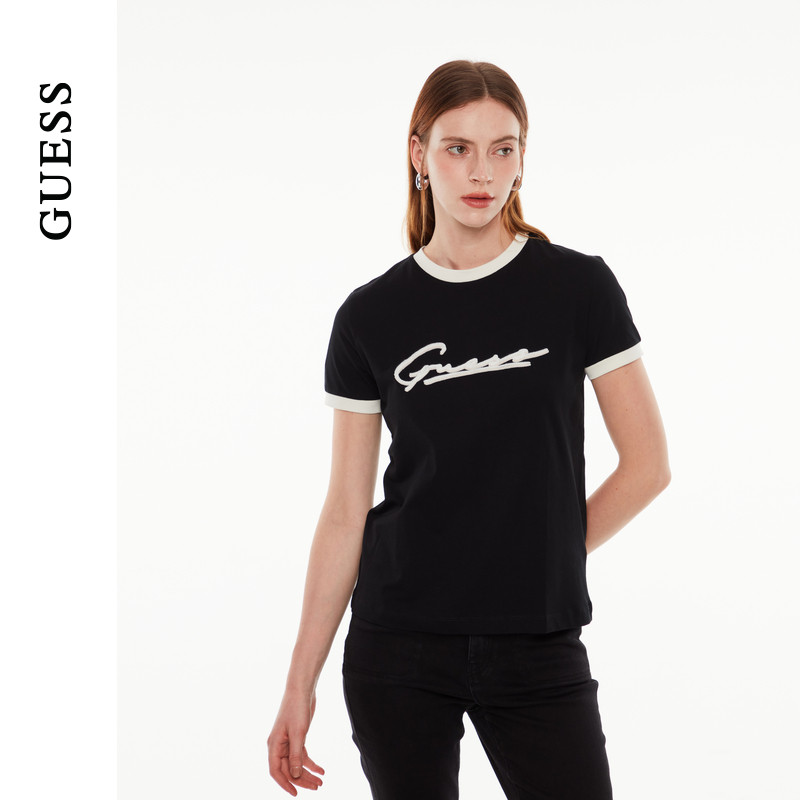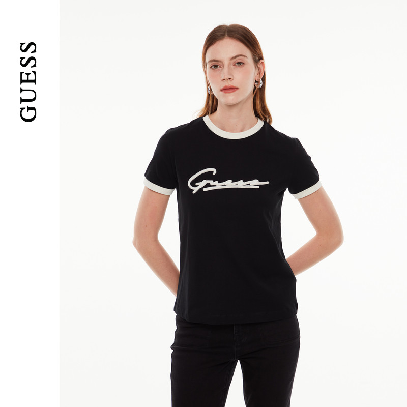 GUESS女士撞色百搭通勤直筒短袖T恤-V4YI05K8FQ4