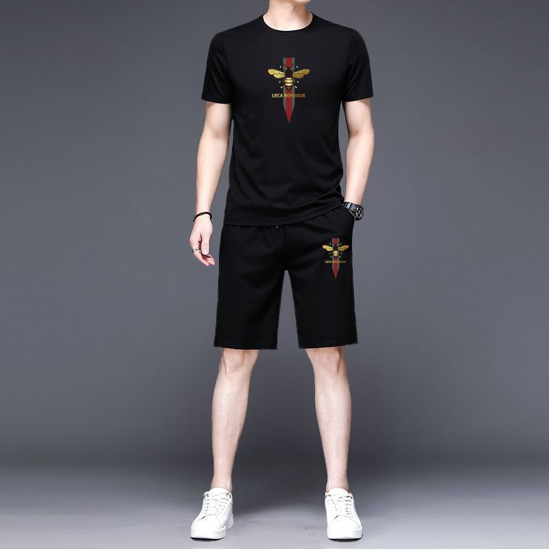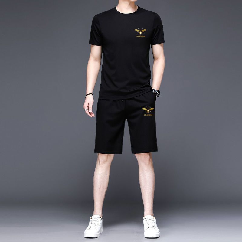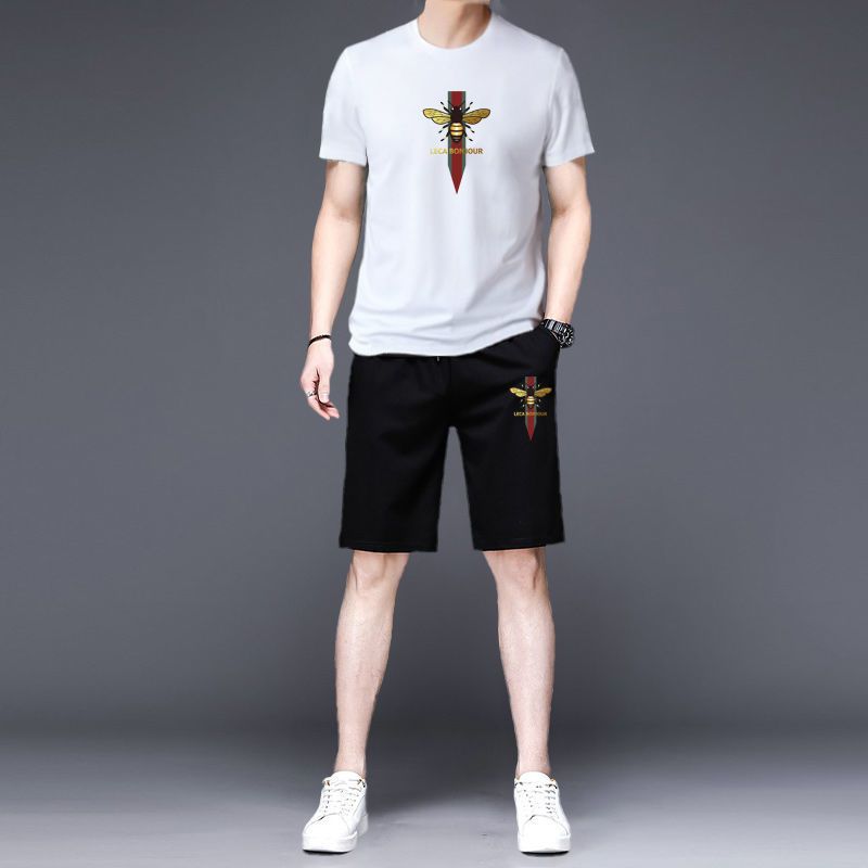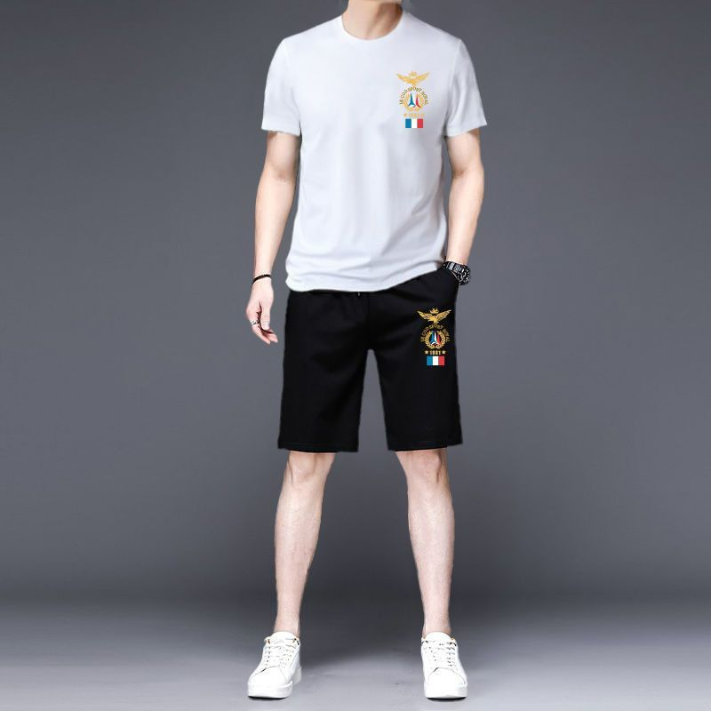 法国公鸡夏季男士运动短袖短裤套装时尚潮流韩版宽松五分裤两件套