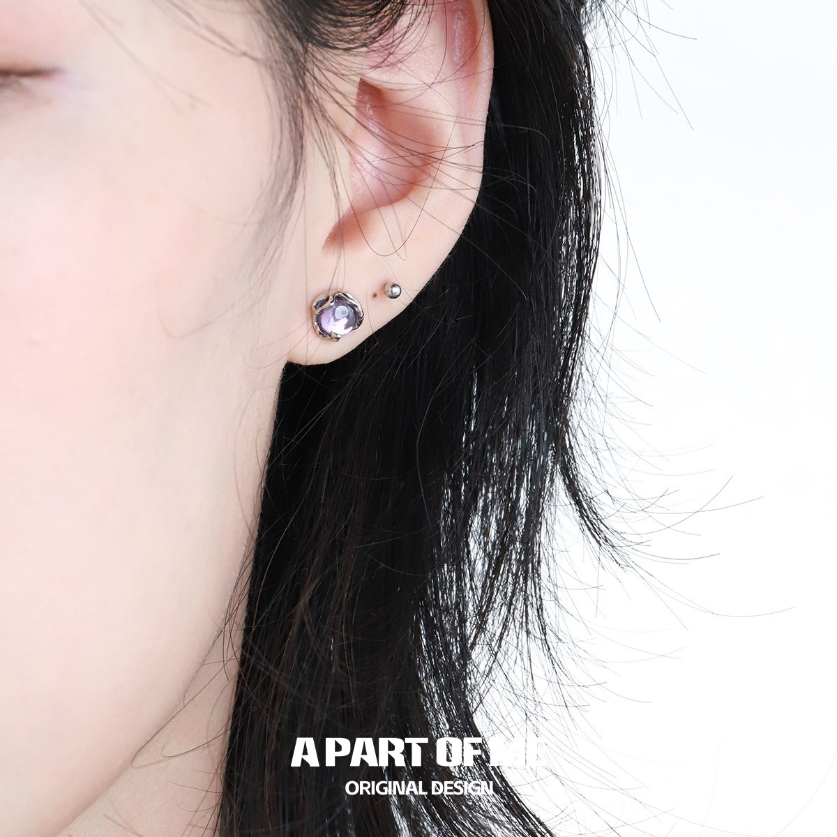 超闪好看 纯银防过敏 原创耳钉小众冷淡高级感紫色甜酷耳饰
