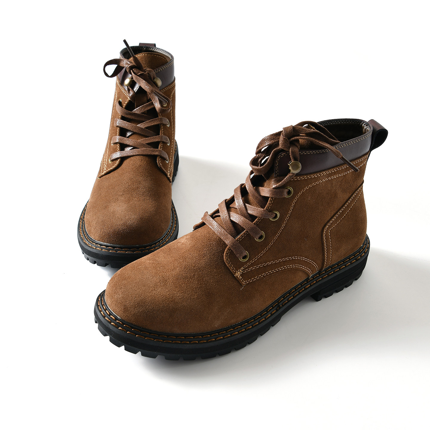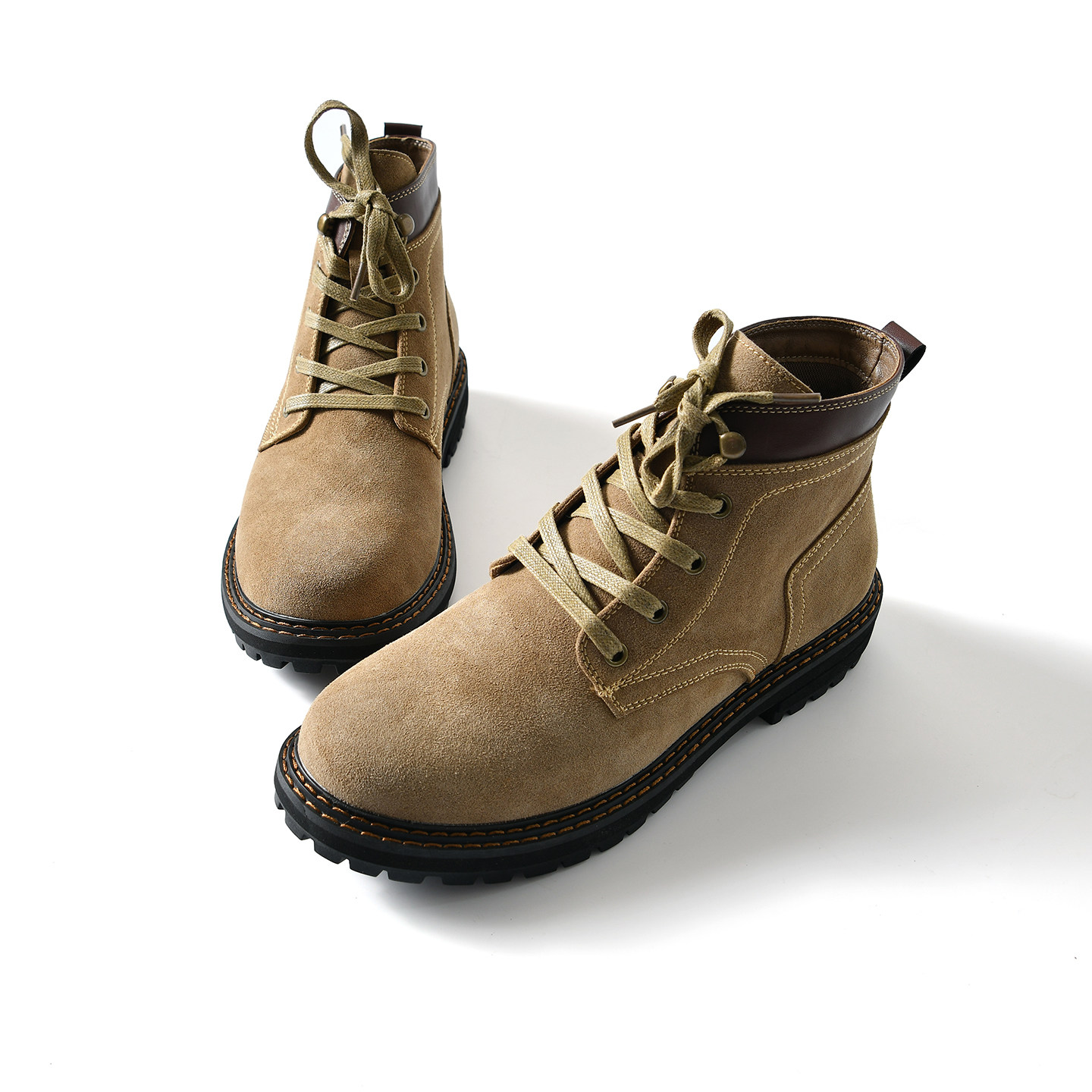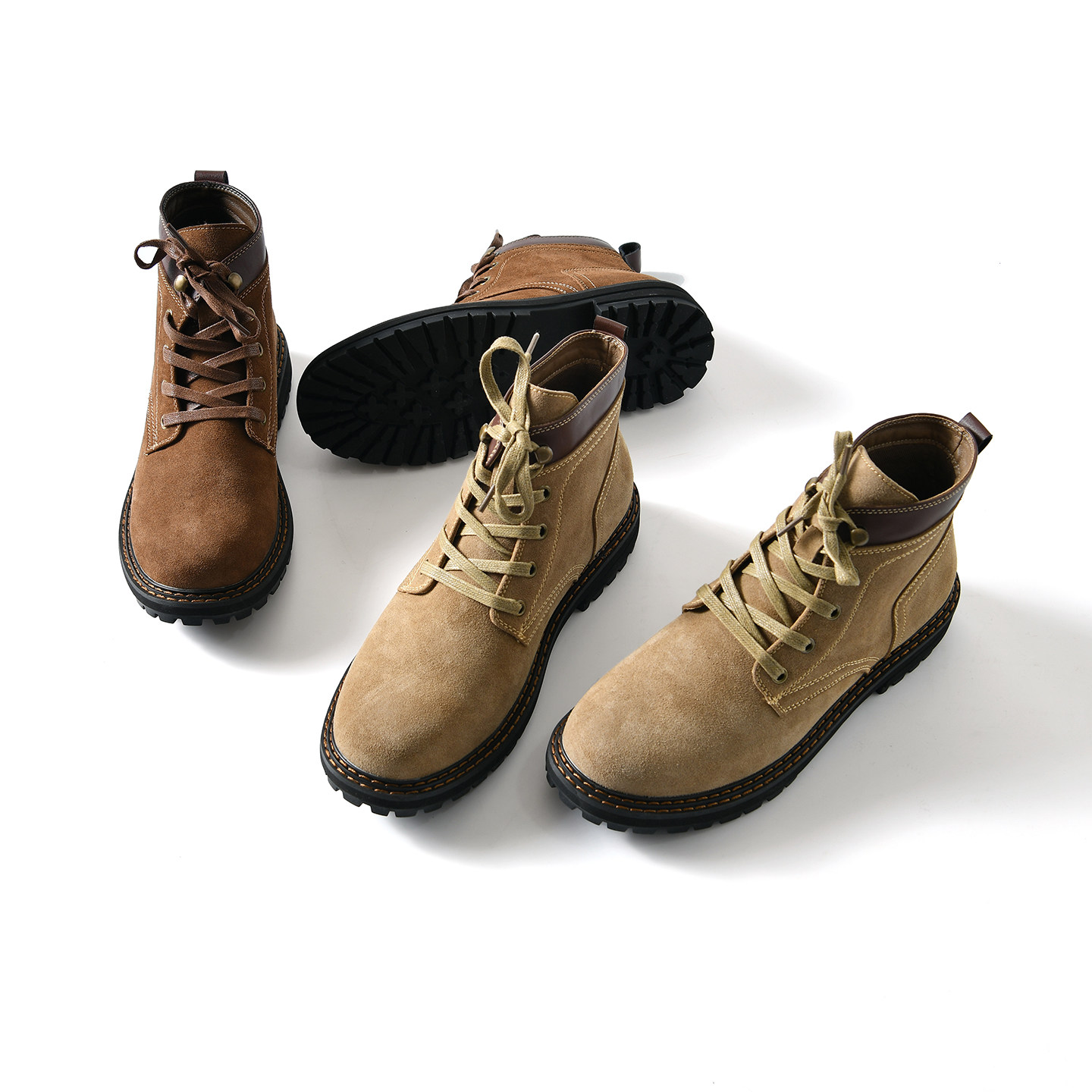 【牛反绒+双车缝线+橡胶防滑鞋底】春秋季男士户外休闲中帮马丁靴