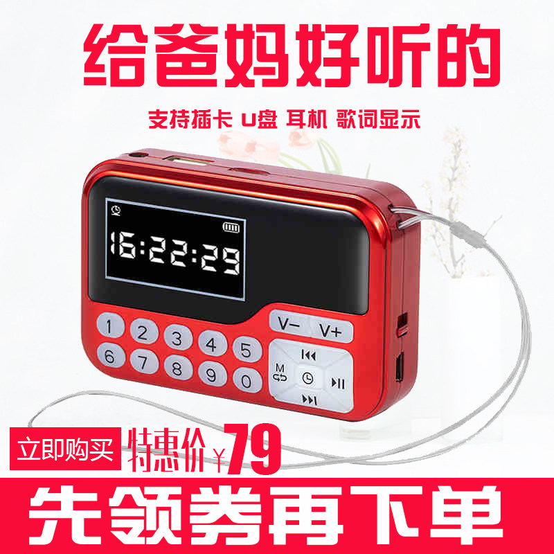 新款便携式迷你插卡小音箱收音机老人随身听老年MP3音乐播放器外放音响u盘歌词显示充电式小型多功能唱戏机
