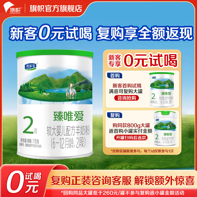 复购优惠】旗帜君乐宝臻唯爱2段6-12个月幼儿配方羊奶粉170g试喝