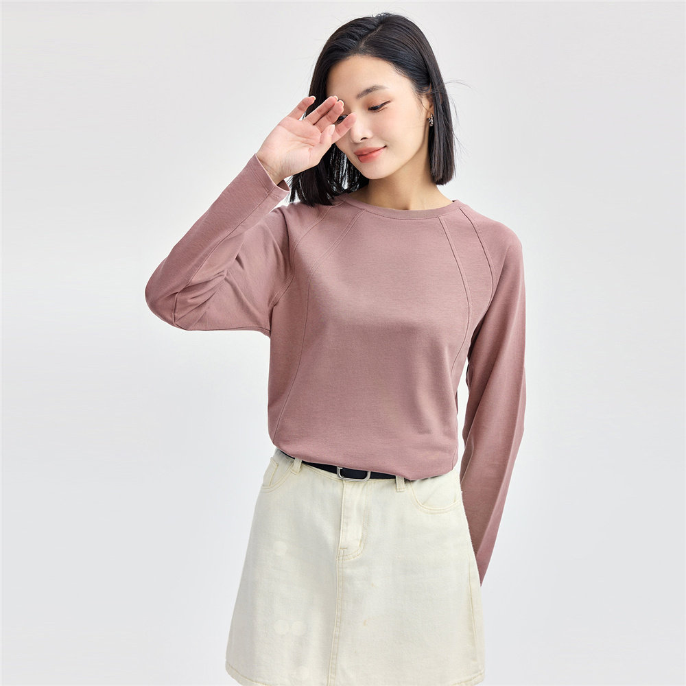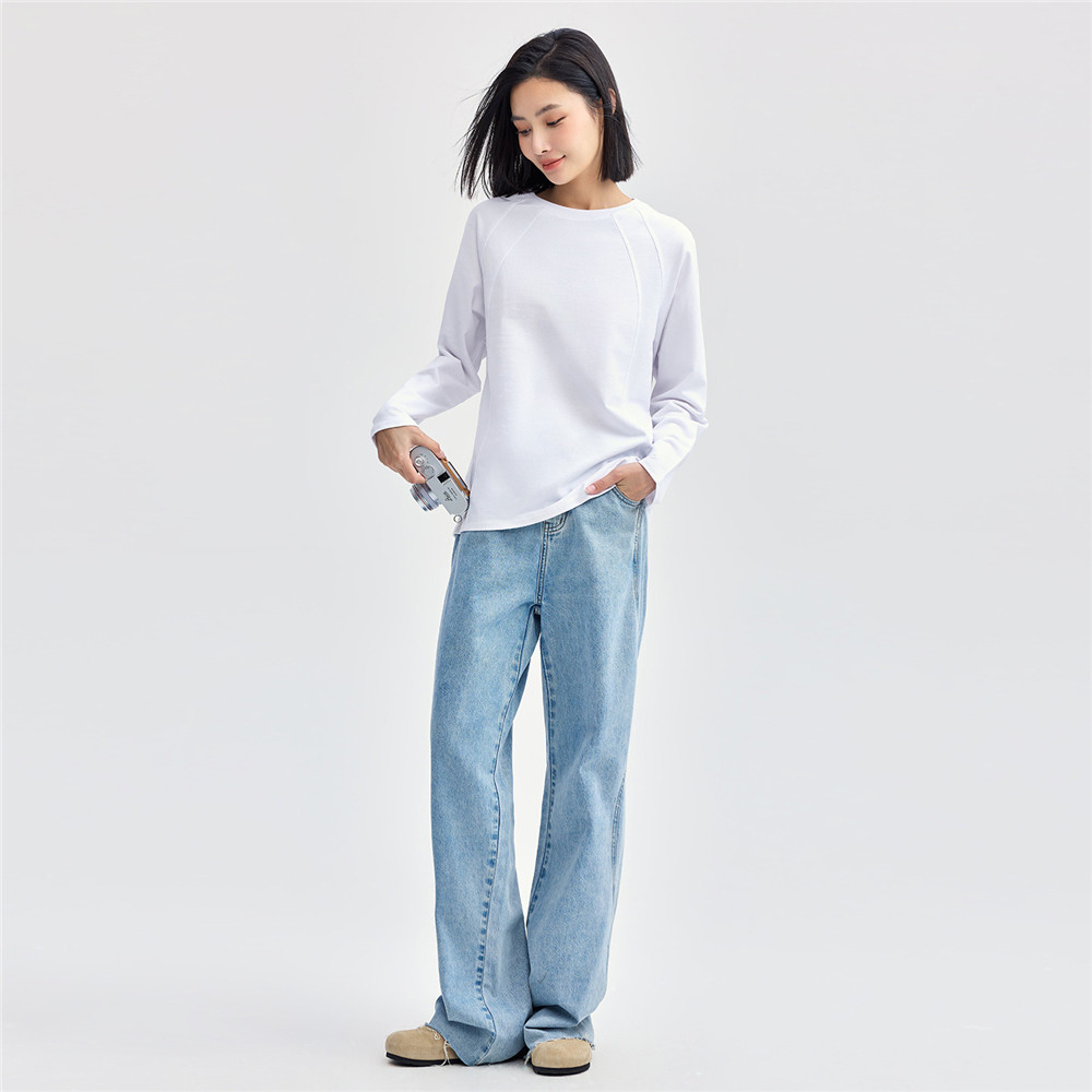 佐丹奴2026年春季新款纯棉卫衣布破骨宽松圆领长袖T恤女13324712