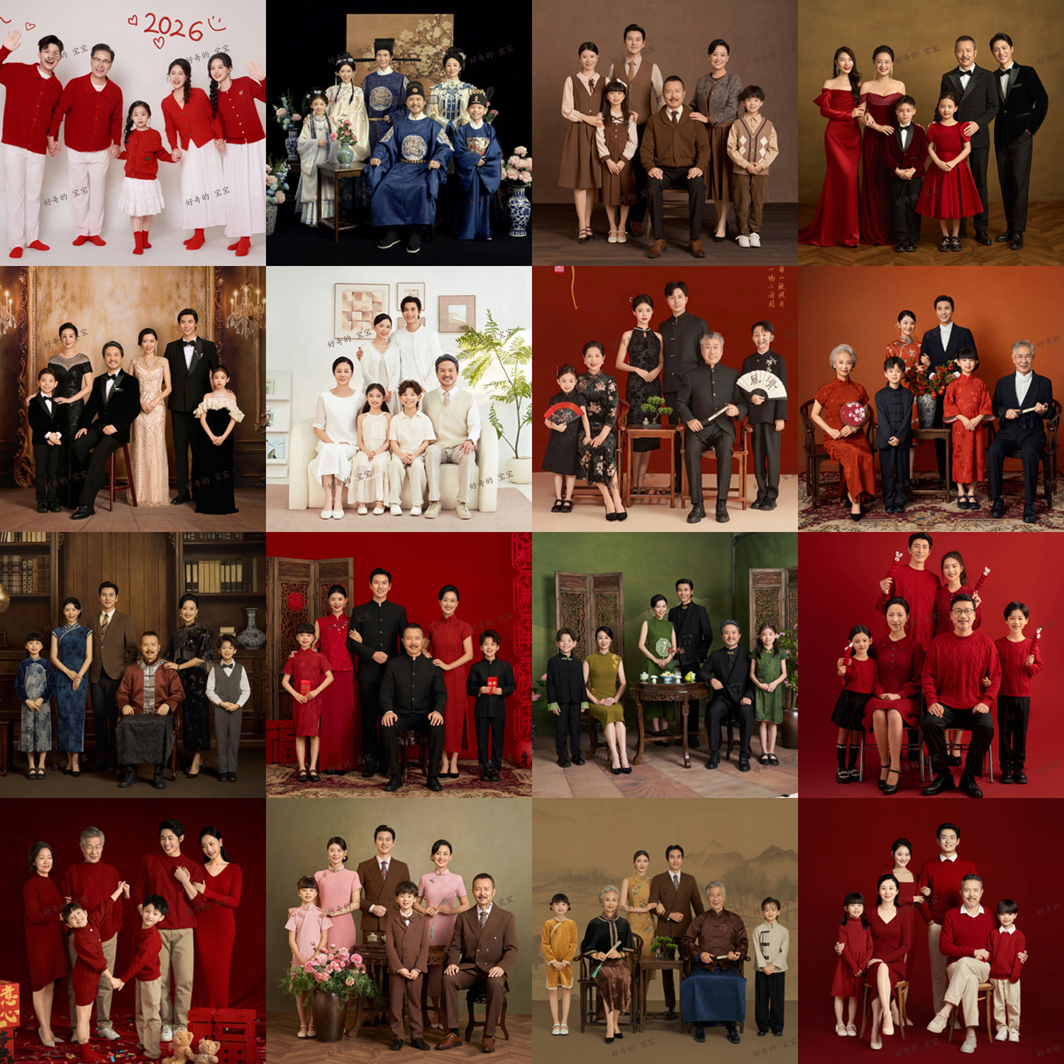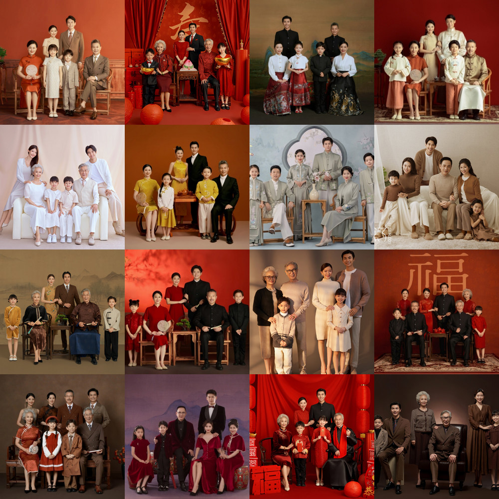 2026新款影楼亲子装摄影服装一家六口全家福新年艺术拍照写真衣服