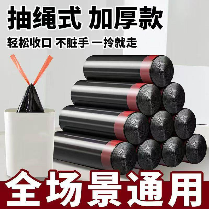 抽绳垃圾袋家用手提式加厚黑色大号特厚超厚实惠装厨房拉级塑料袋