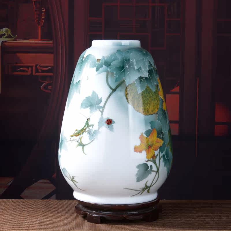 醴陵陶瓷新世纪艺术馆黄亚军手绘釉下五彩陶瓷花瓶玄关摆件可收藏