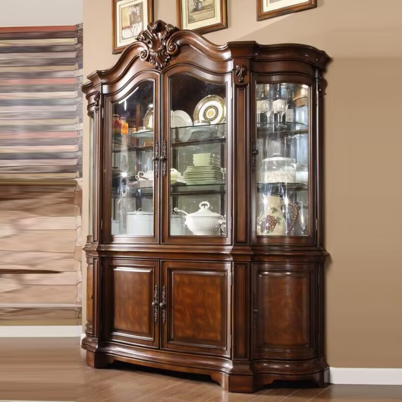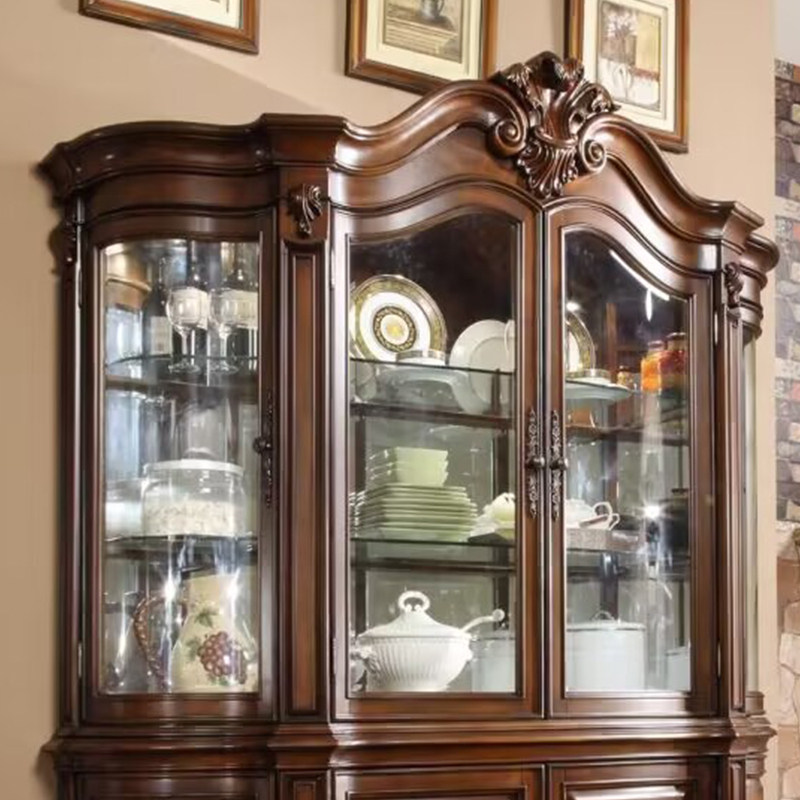 欧式实木四门酒柜家用客厅装饰柜玻璃门展示柜美式复古饰品柜子