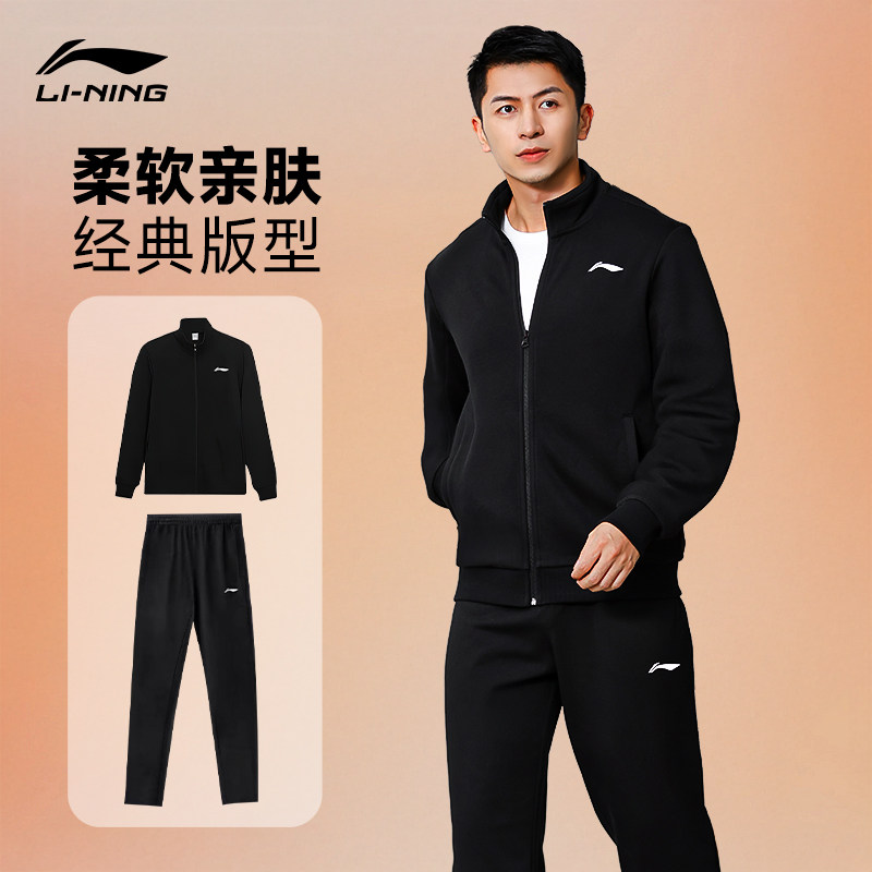 李宁运动服套装男秋冬男装新款运动外套男士秋装冬季跑步休闲卫衣