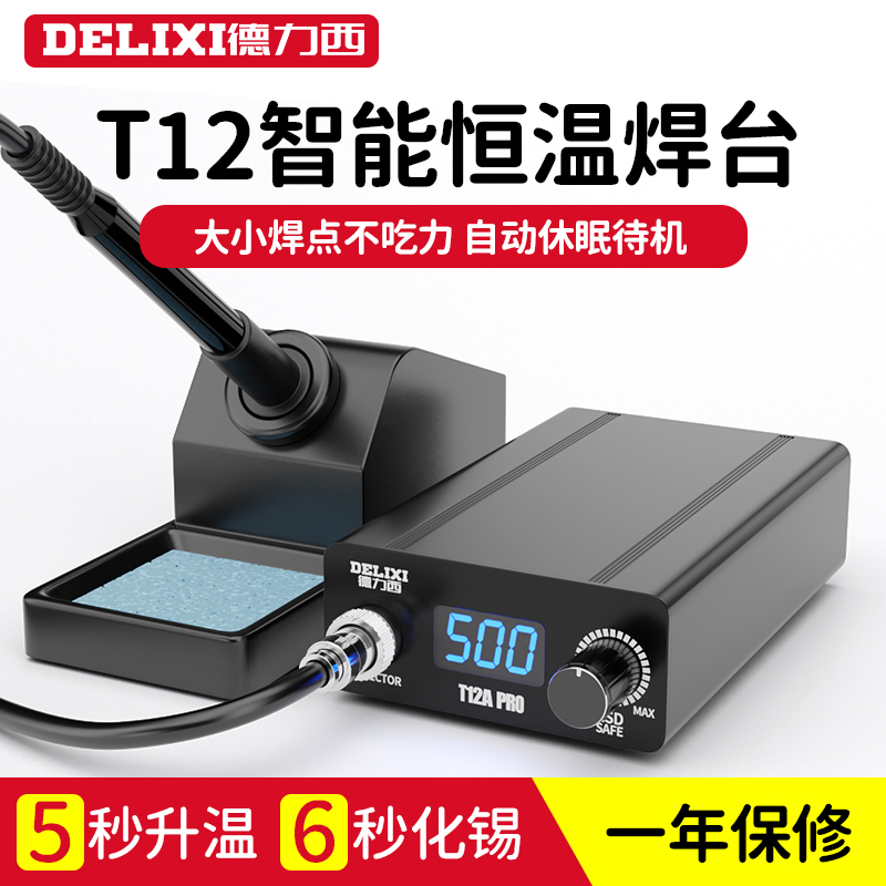 德力西T12焊台电烙铁大功率数显可调恒温手机维修焊接工具DIY套件
