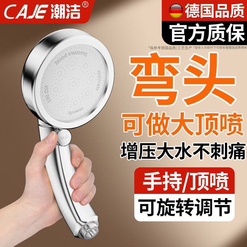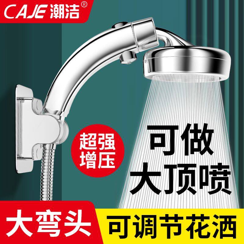 潮洁手持弯头花洒喷头可做顶喷手持两用家用淋浴莲蓬头洗澡套装