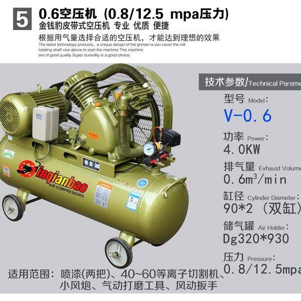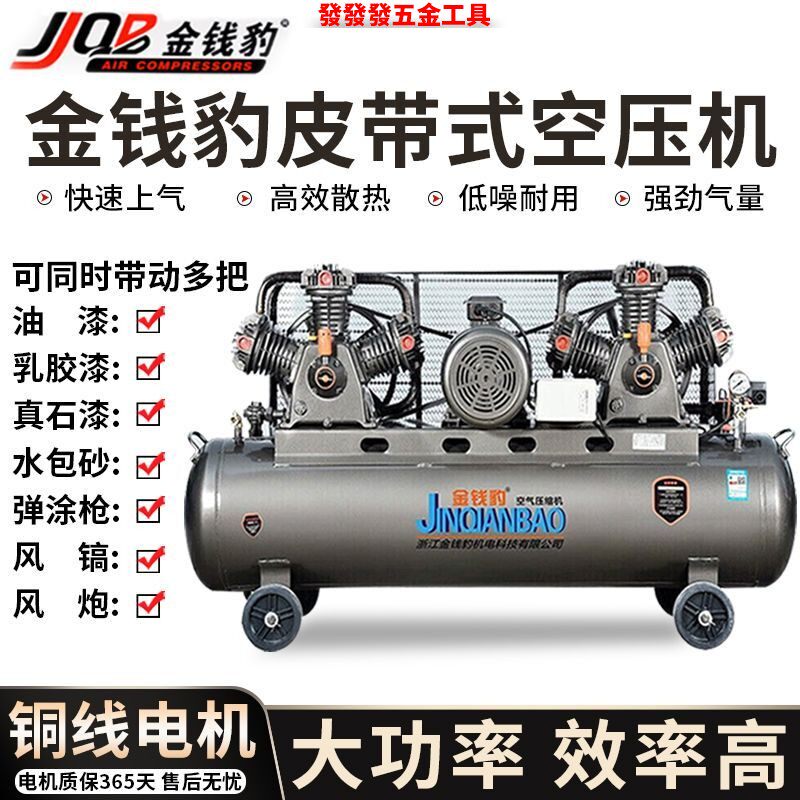 金钱豹空气压缩机空压机皮带式高压汽修真石漆气泵喷漆冲气泵打气