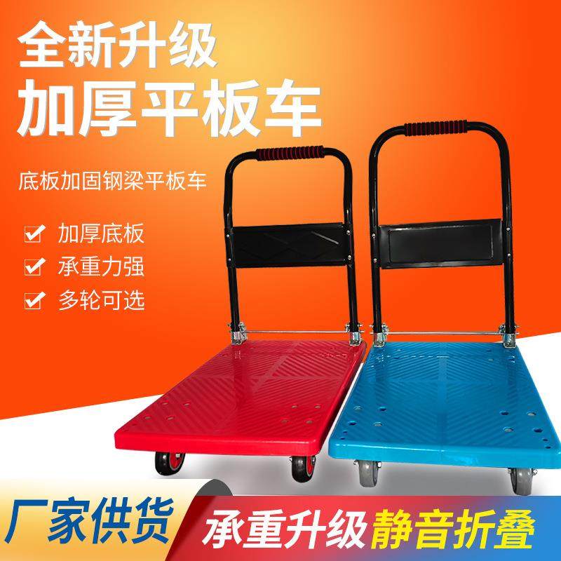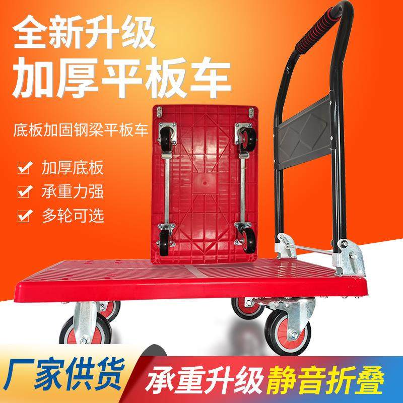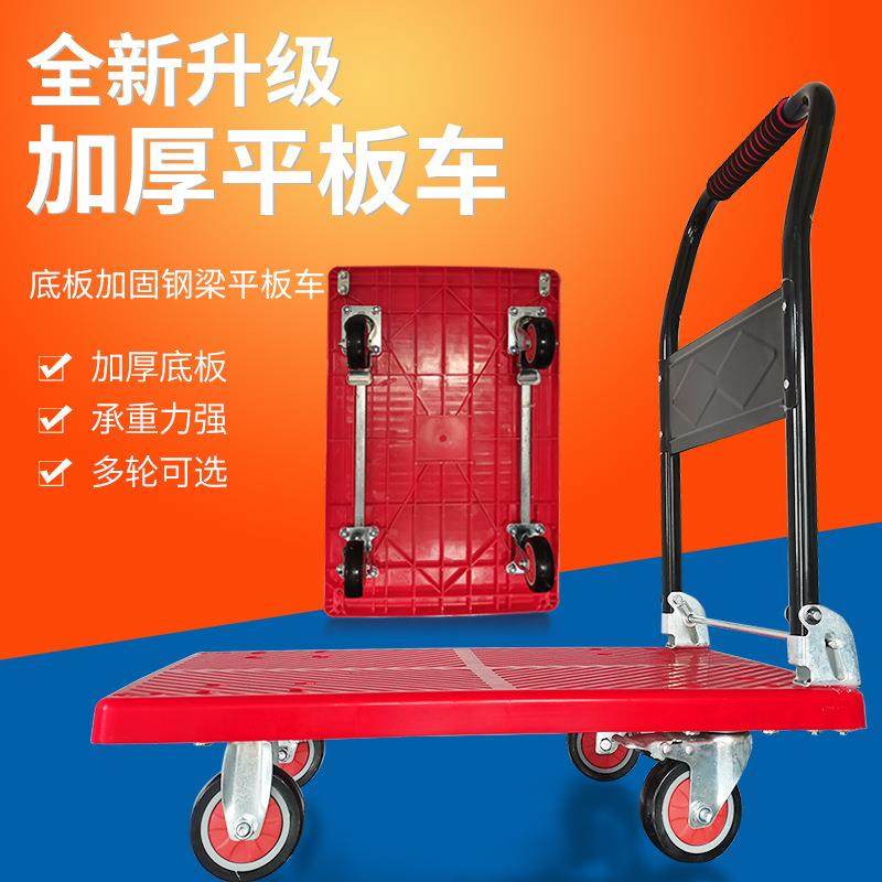 折叠平板手推车家用便携搬运工具静音四轮加厚拖车高承重力推车