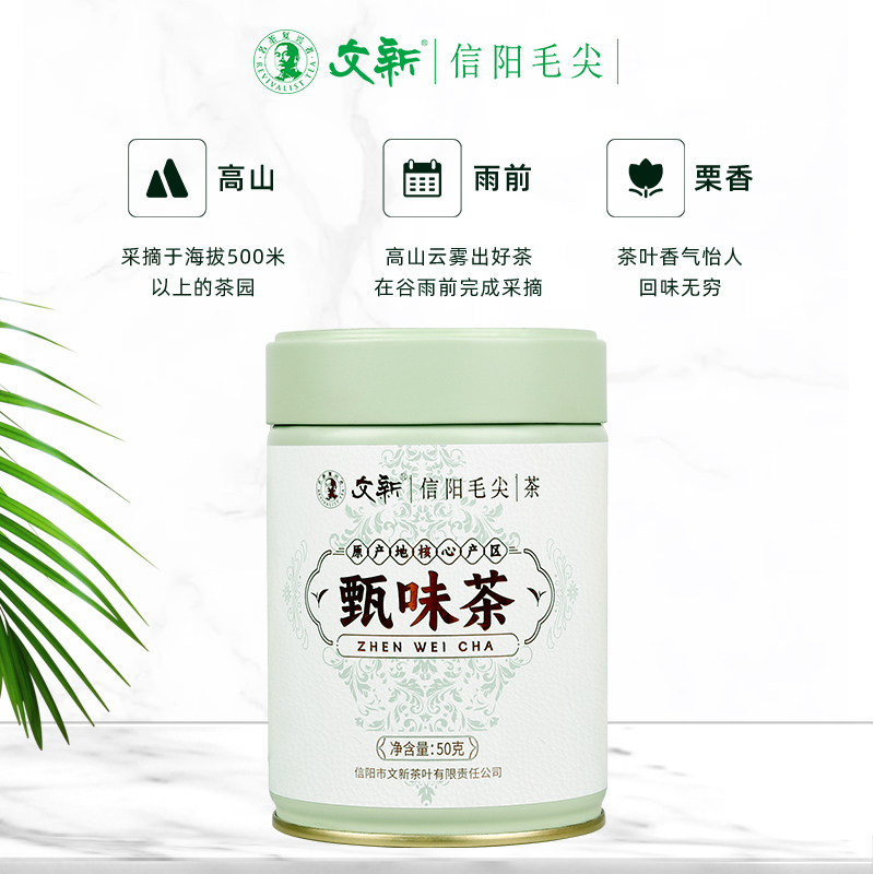 春茶上市文新信阳毛尖茶叶绿茶2025新茶雨前嫩芽叶甄味茶罐装50g