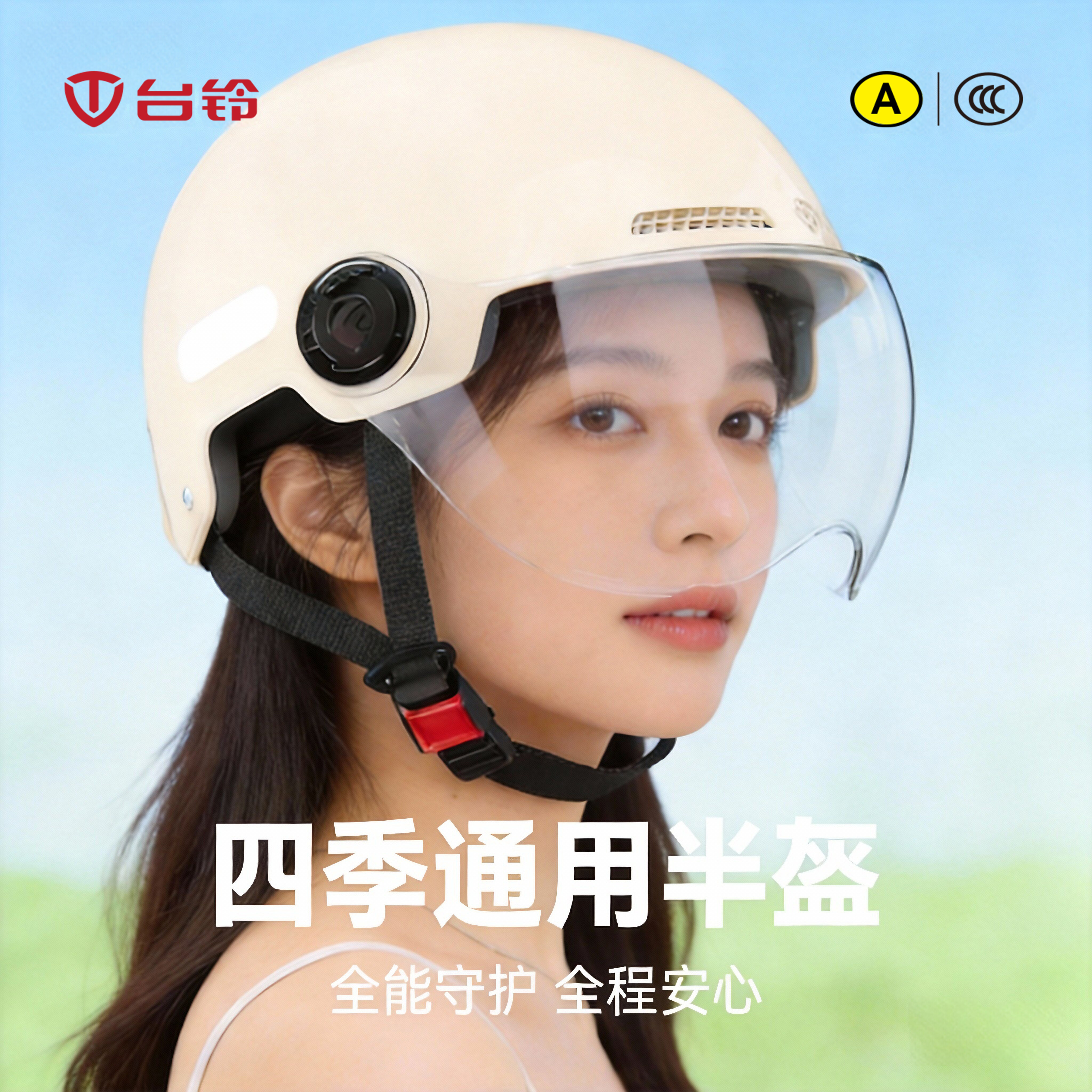 台铃3c认证电动车头盔女新款夏季半盔轻便电瓶摩托车夏盔男安全帽