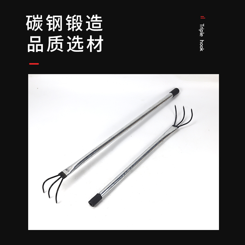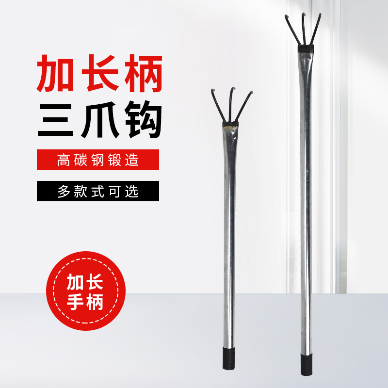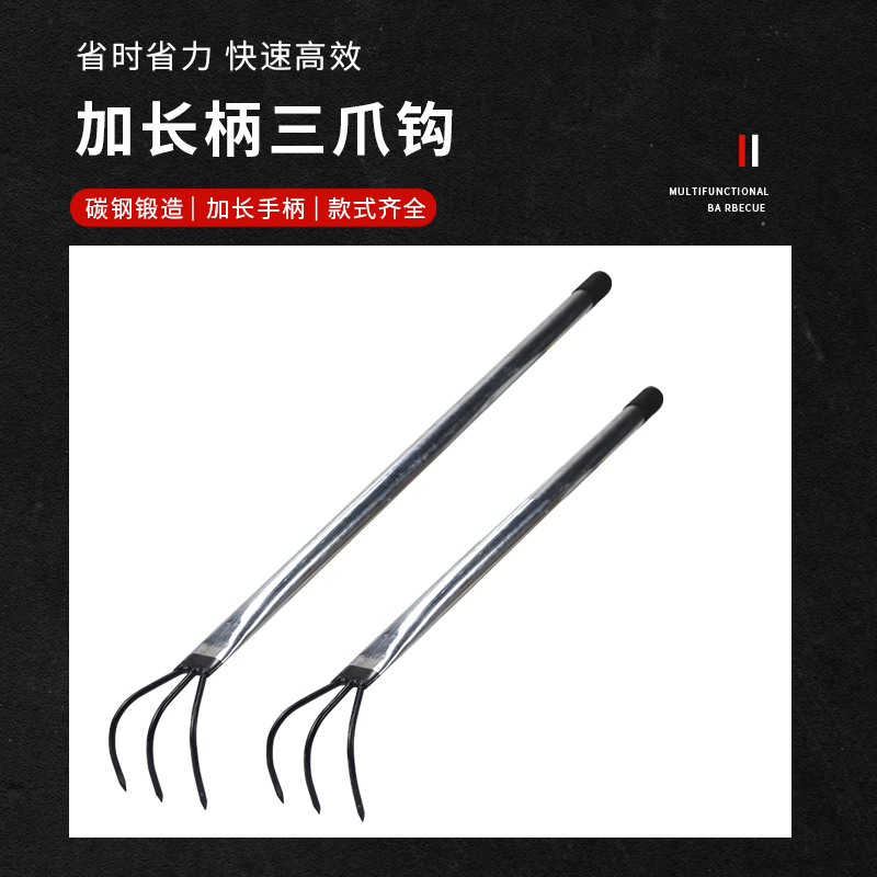 3齿加长抓钩垃圾分拣爪农用工具钩子花生钩赶海地膜耙子钢筋硬杆