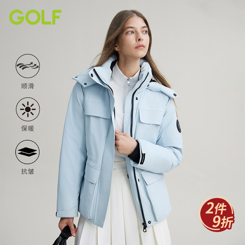 GOLF/高尔夫连帽羽绒服女士冬季防风保暖鸭绒派克服滑雪夹克外套
