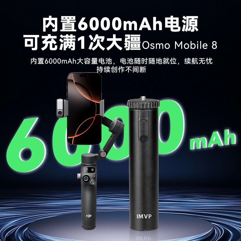 【3C认证】6000毫安充电宝续航手柄适用DJI大疆Osmo Mobile 8云台稳定器配件户外电源手机直播拍摄桌面支架